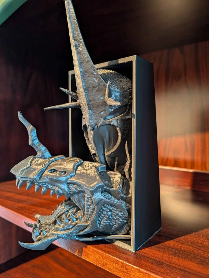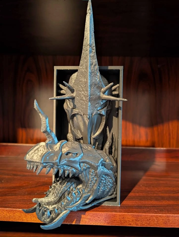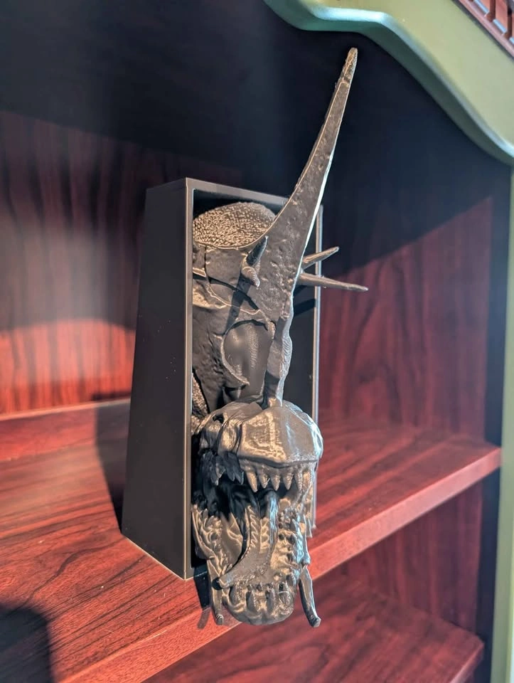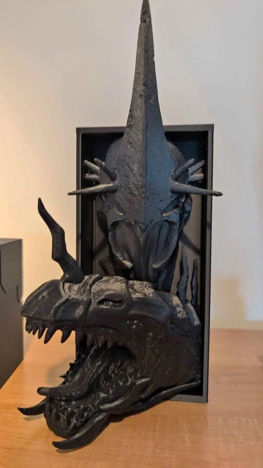 Transform your shelf with a dramatic centerpiece inspired by the Witch King of Angmar! Perfect for Lord of the Rings fans and fantasy collectors Size: 10cm x 20cm (4in x 8in) – fits most bookcases and display shelves Unique Gothic wall mount or book nook insert Add an epic touch to your reading space or home decor! Message for pickup details or questions.