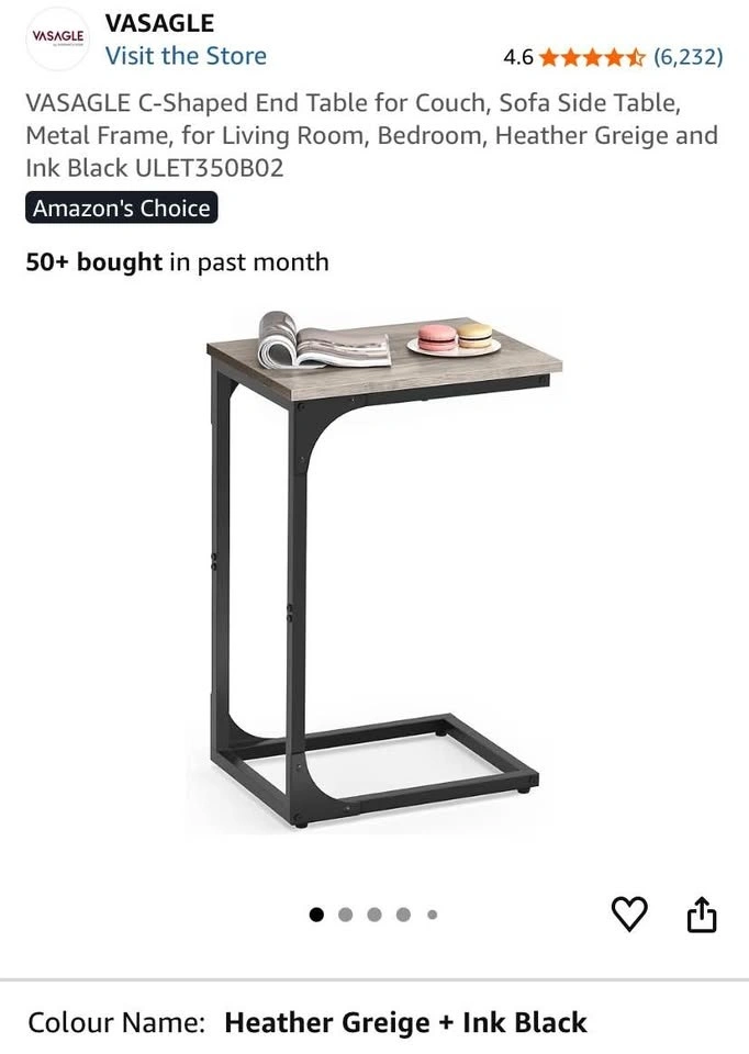 Pick up: Brock Road and Rex Heath Drive in Pickering. Upgrade your living space with this VASAGLE C-Shaped End Table — perfect as a sofa-side table, couch snack table, laptop table, or small TV tray. Features: Smart C-shape design slides neatly under couches and beds. Sturdy metal frame for long-lasting stability. Heather Greige + Ink Black finish adds a clean, modern look. Great for living rooms, bedrooms, small spaces, or apartment living. Ideal for snacks, drinks, laptops, books, or décor.