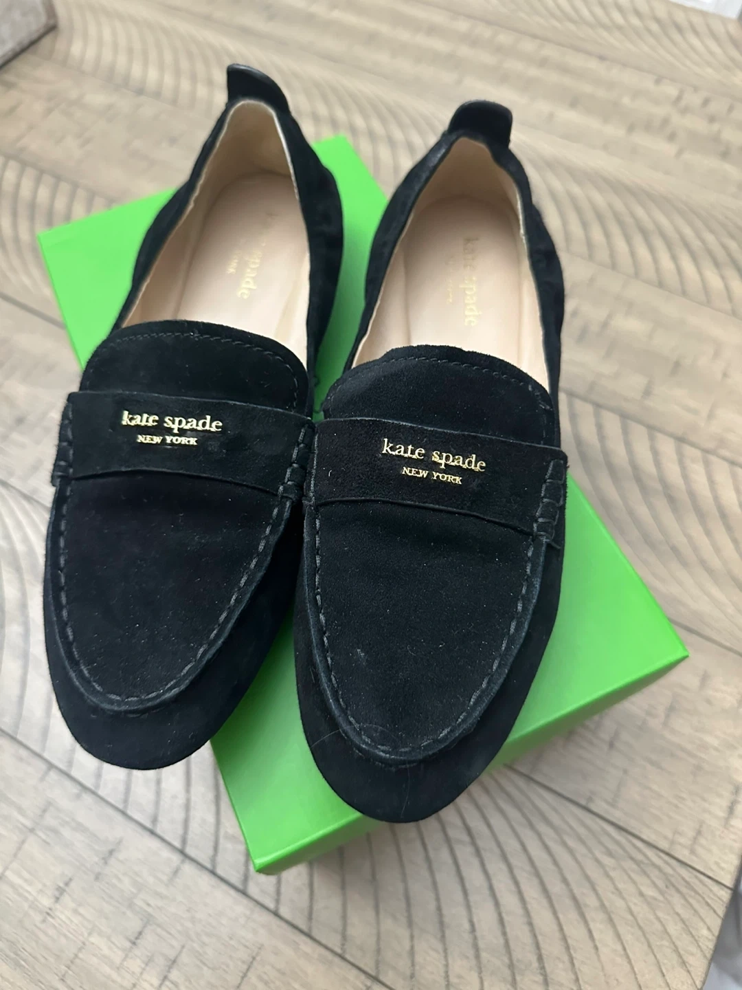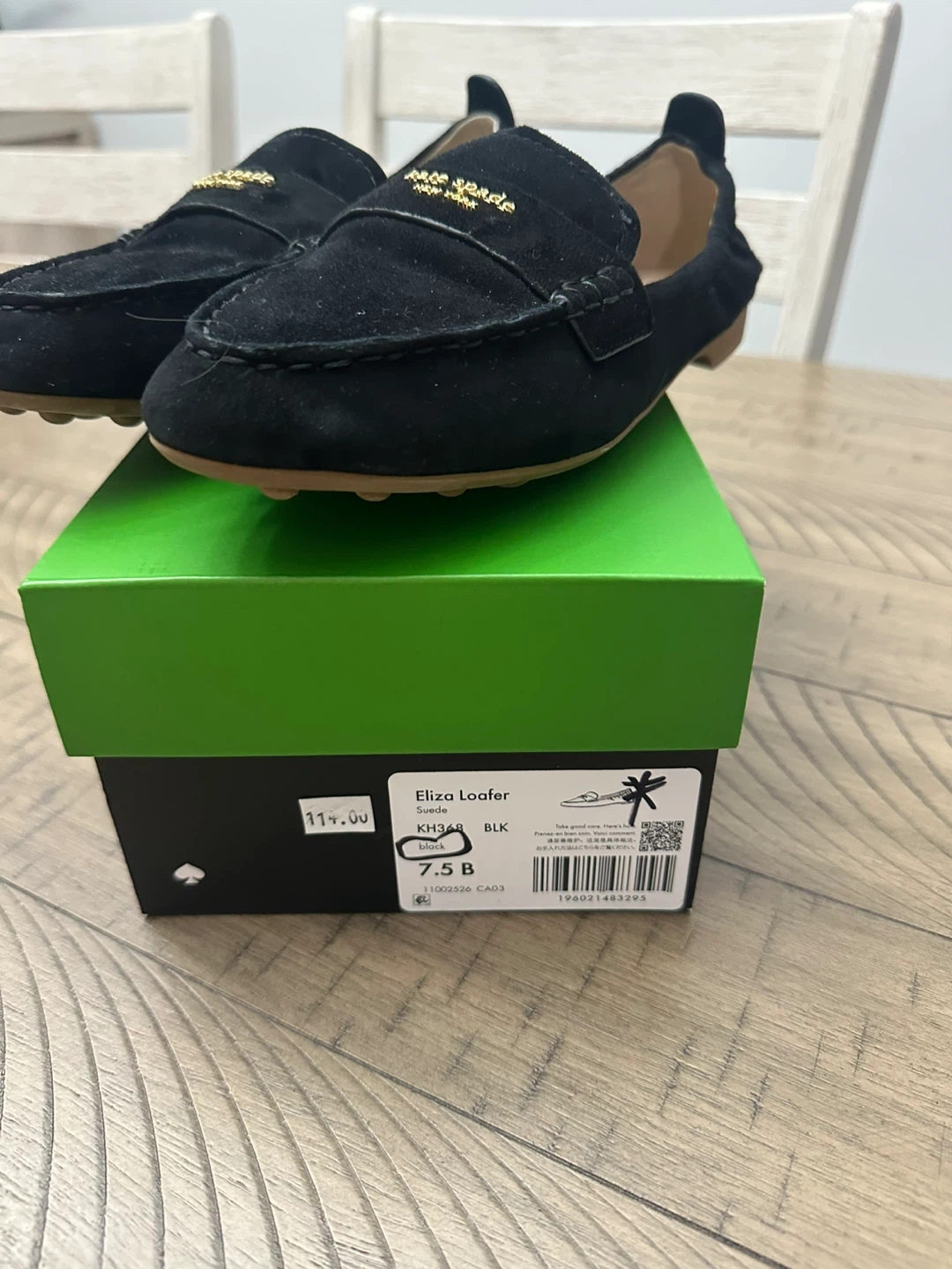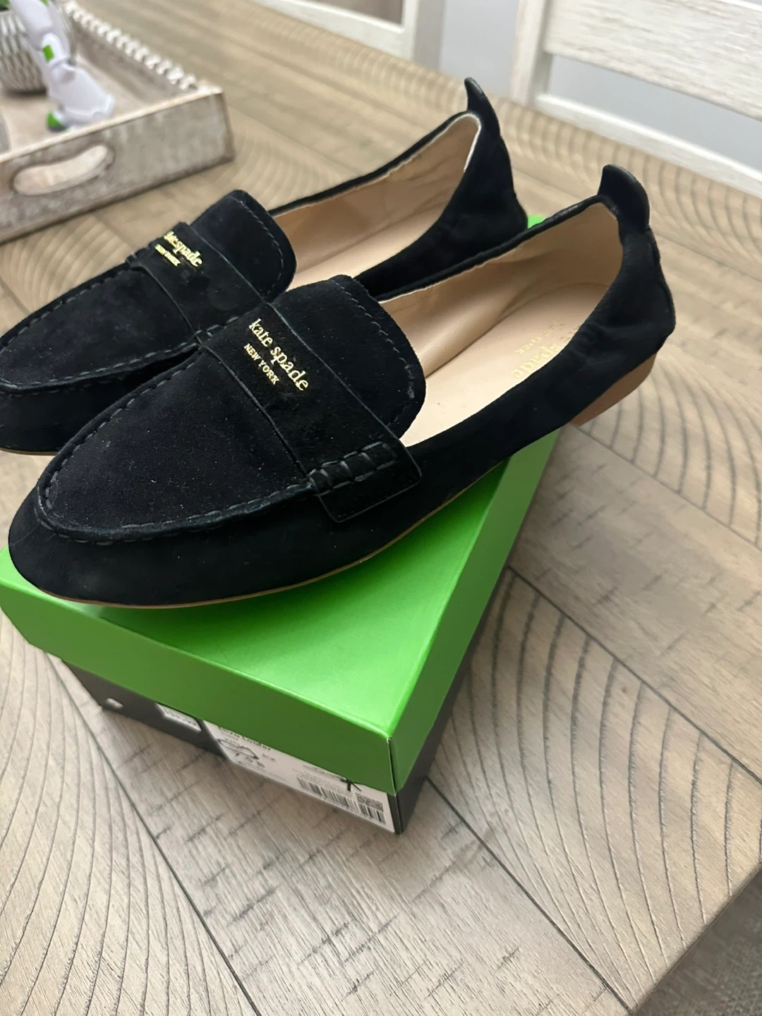 Buy & SellNew Kate Spade Eliza Loafers - Black Suede - Size 7.5New Kate Spade Eliza Loafers - Black Suede - Size 7.5$100Black suede Kate Spade Eliza Loafers. Features gold-tone logo detail on the strap. Includes original box. Size is 7.5 . New in boxConditionNewBrandKate SpadeWHERE TO MEETCheck LocationView MapSELLERverifiedAliceHeadon Forest1095 reviews0 chats·0 favorites·10 viewsSEND CHAT TO SELLERHi Alice! I’m interested in your listing.Hi Alice! I’m interested in your listing.Get the Karrot app to chatSign In to chat