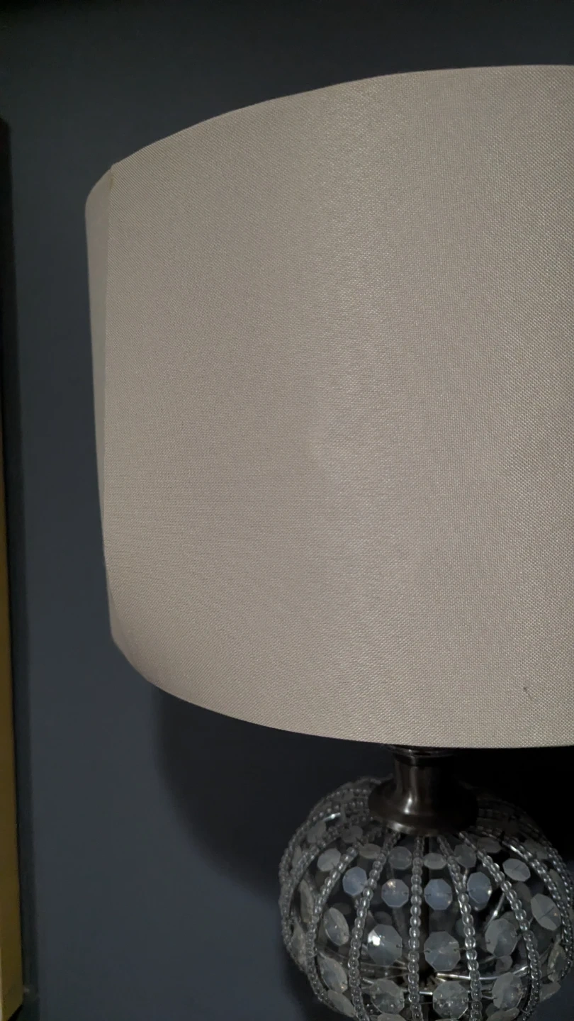 This elegant floor lamp features a fabric drum shade and a decorative crystal-embellished base. It's constructed with a brushed nickel finish. Adds a touch of sparkle to any room!