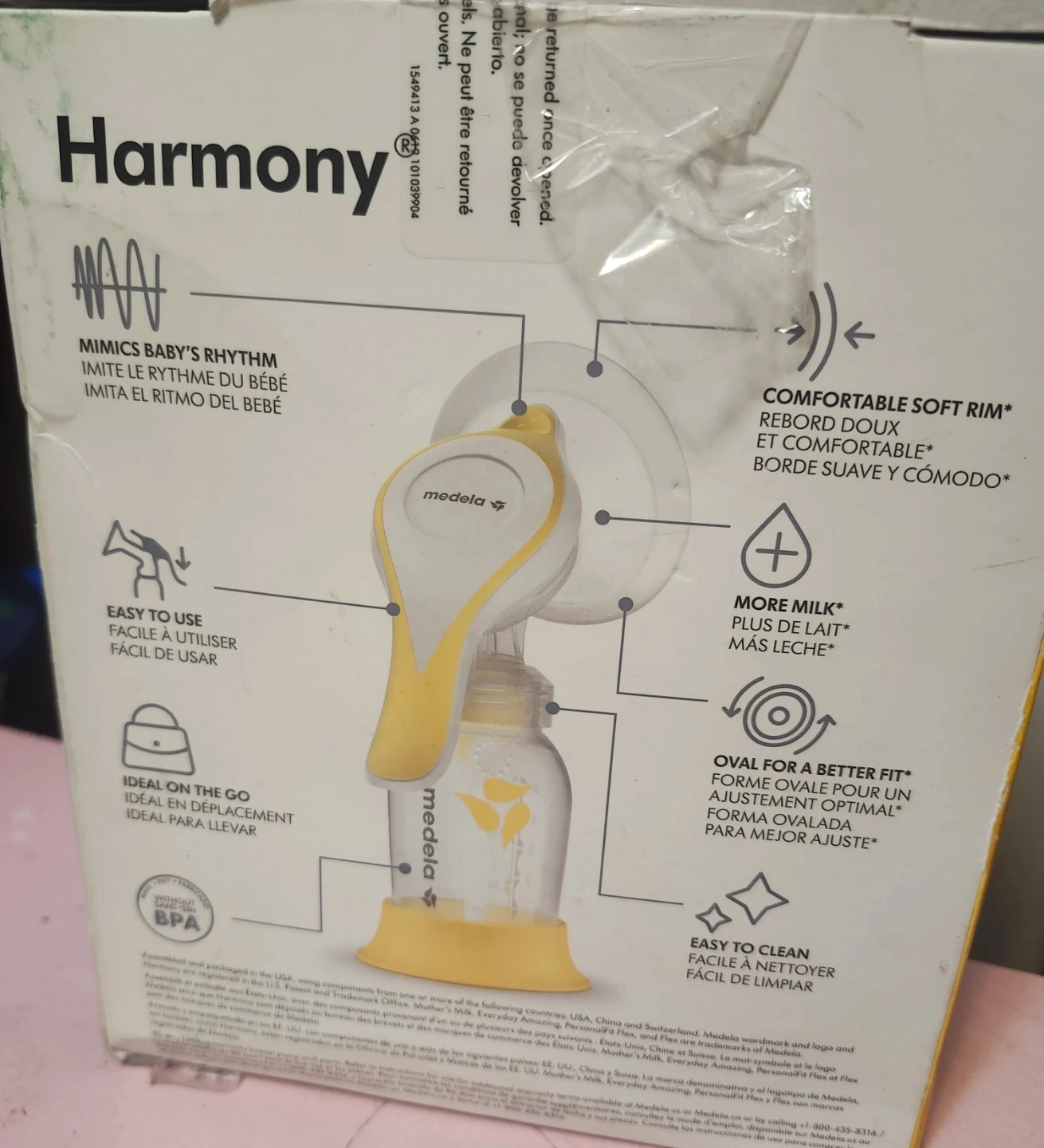 Selling a Medela Harmony manual breast pump. It's light and portable, perfect for expressing and collecting breast milk. The box is included!