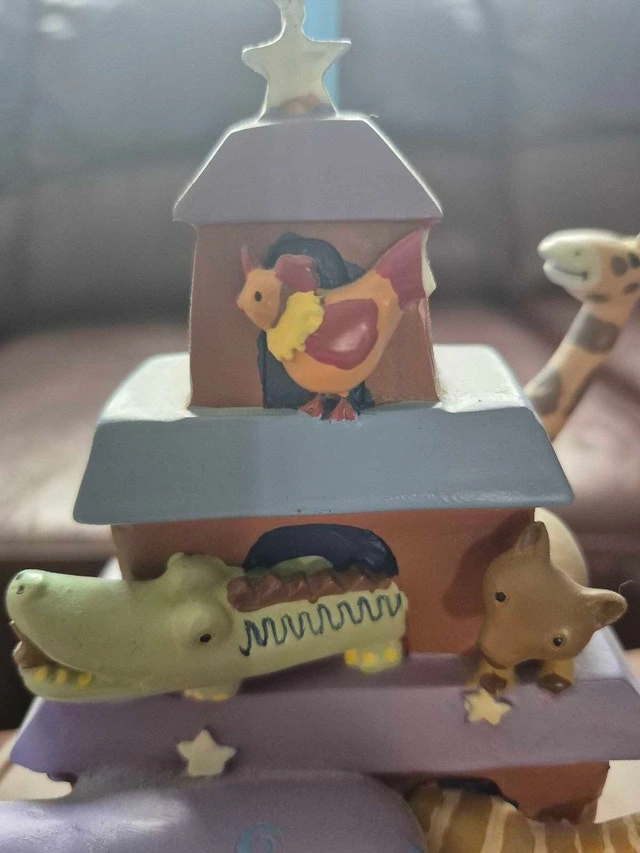 This Noah's Ark kids lamp is very detailed and colourful, featuring many different animals as shown in the photos.