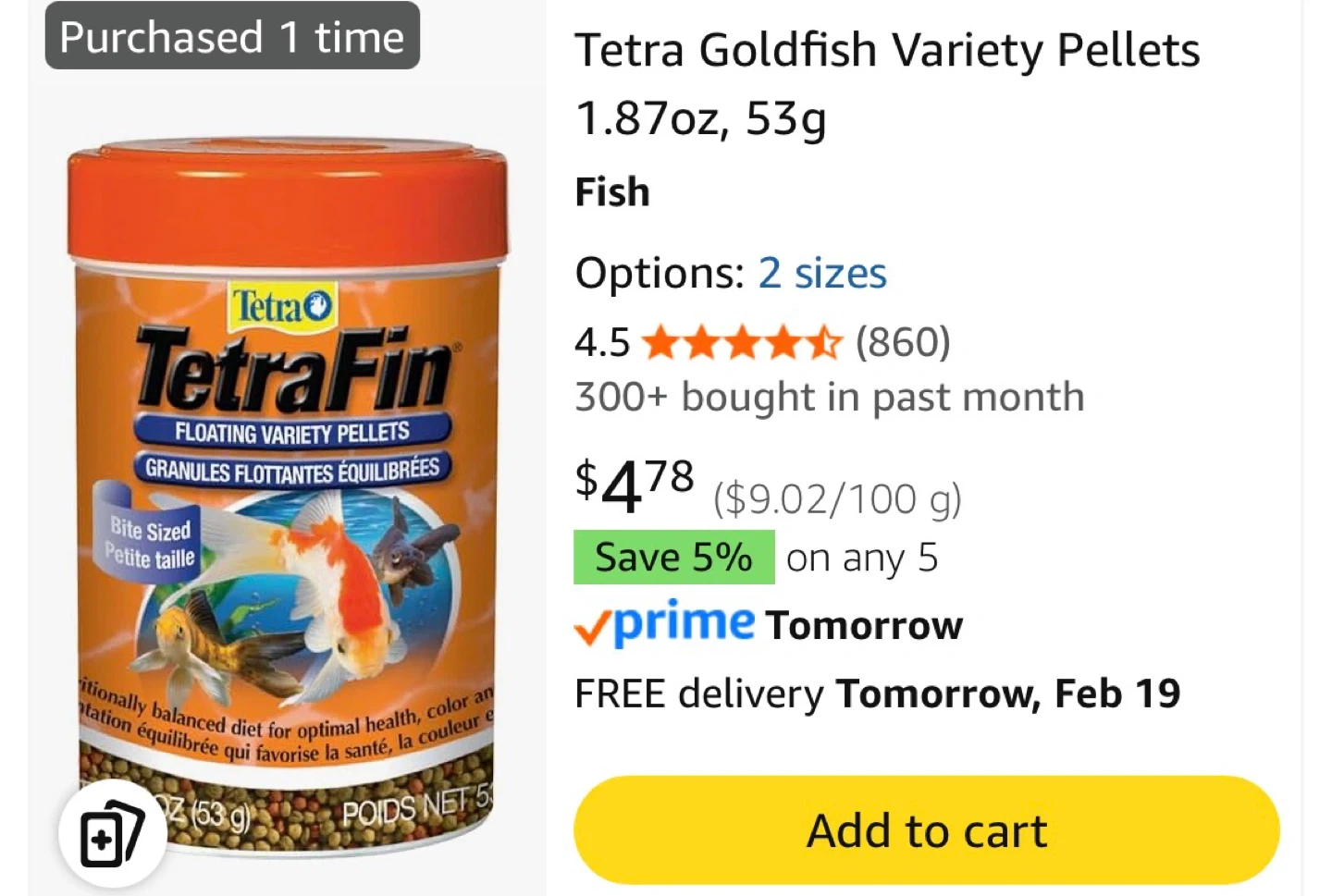 Brand new, sealed Tetra Goldfish variety pellets. Bought the wrong food for my fish and missed the return window. Fresh and unopened.