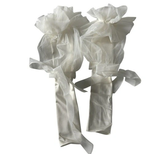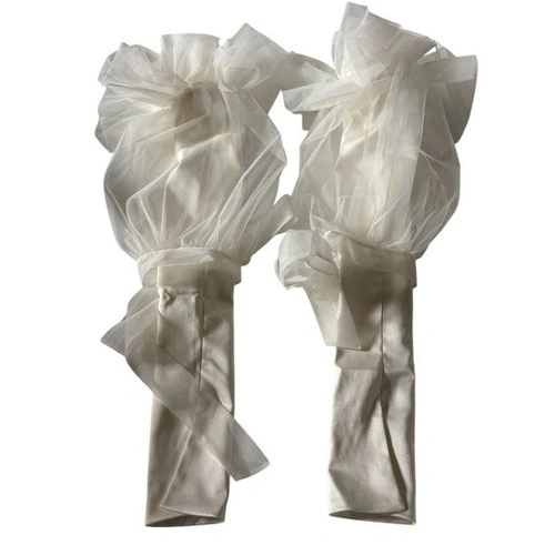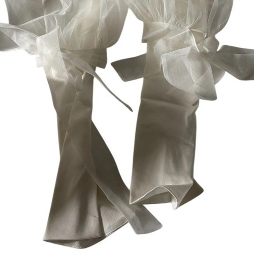 Purchased these gloves to wear with a wedding dress but didn't end up using them. They have beautiful tulle details and tapered fitted sleeves. Purchased in a size small and were custom ordered. Brand new and still in original packaging.