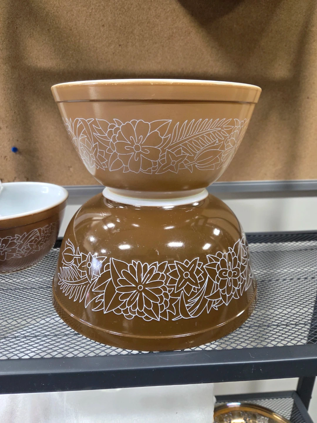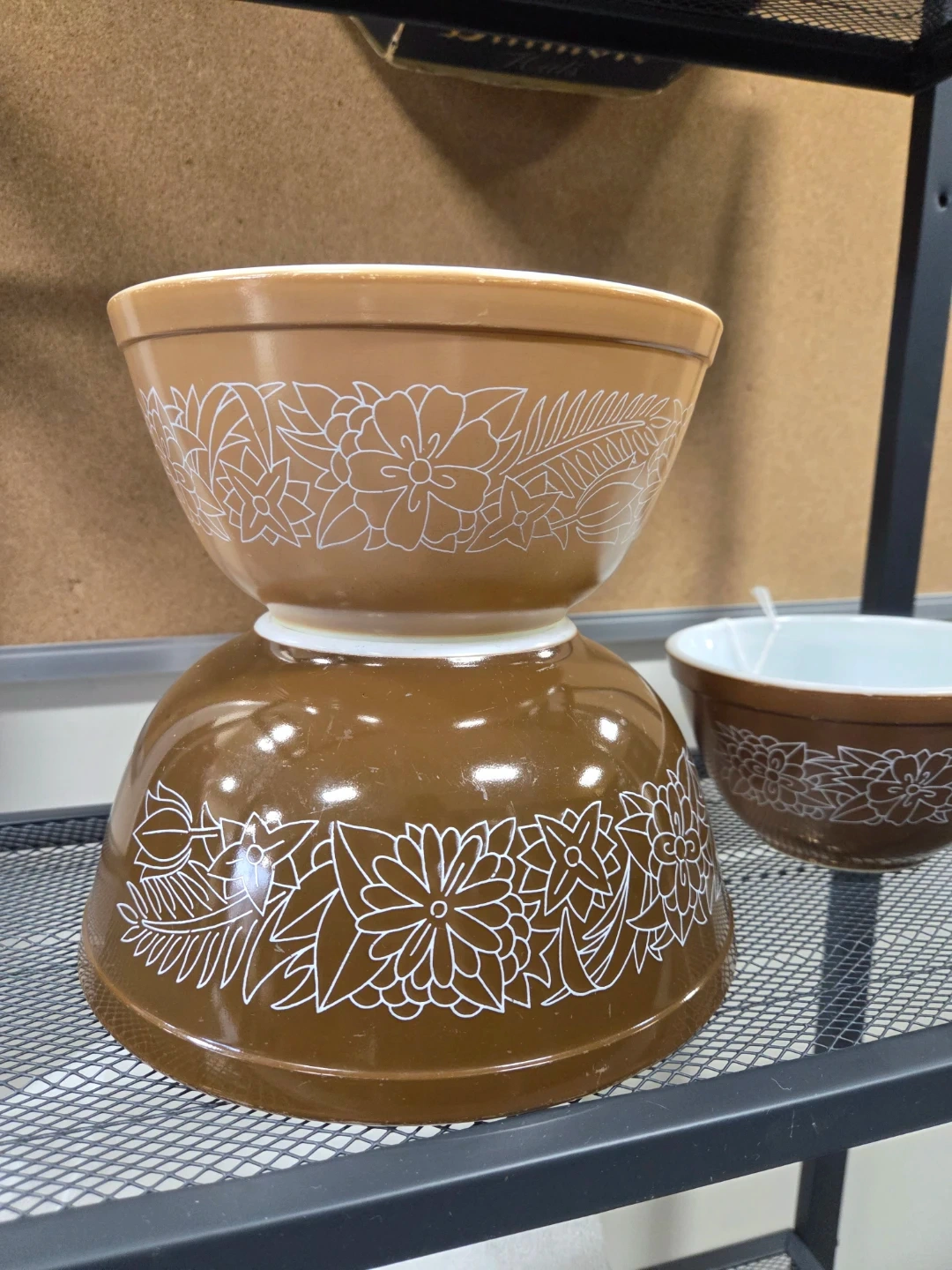 Pyrex Mixing Bowls Set - chocolate woodland Floral Pattern