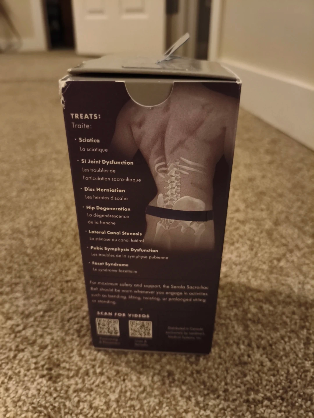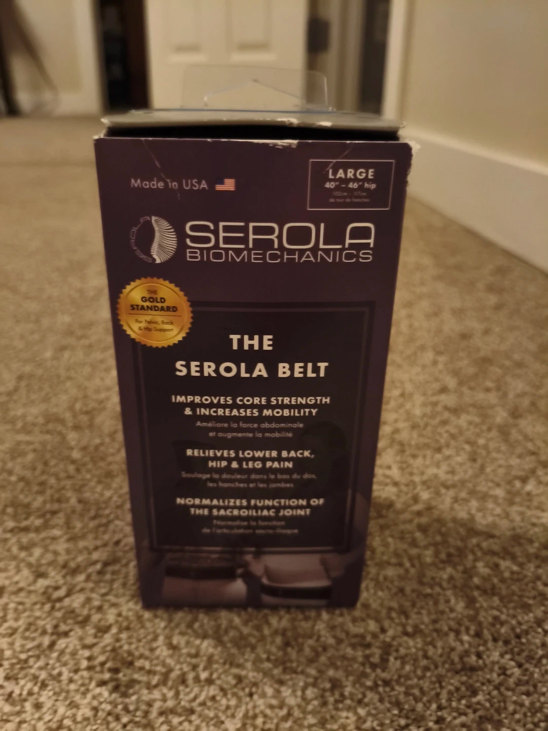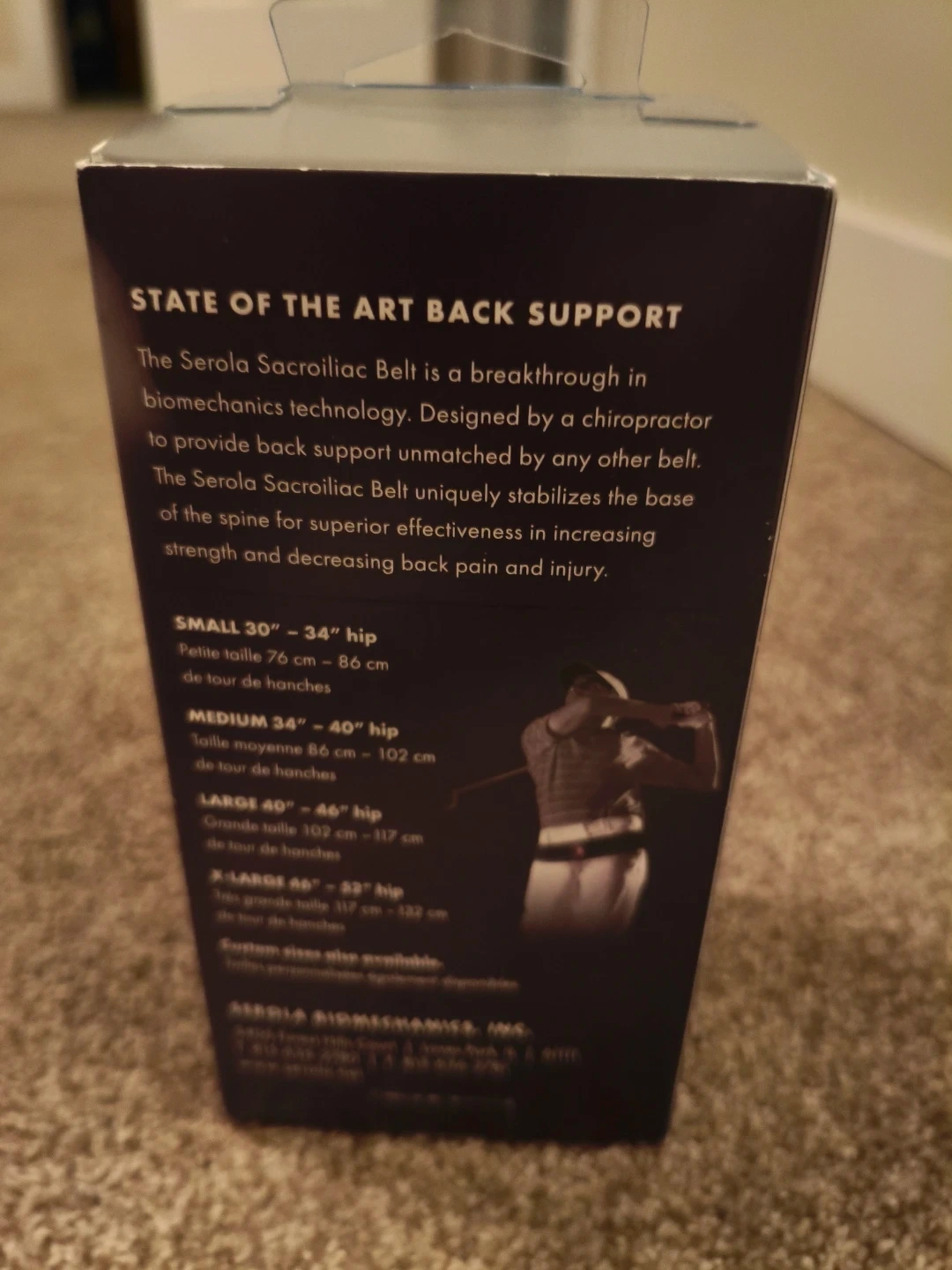 The Serola Sacroiliac Belt improves core strength and increases mobility. It relieves lower back, hip, and leg pain by normalizing function of the sacroiliac joint. It's designed to strengthen muscles and doesn't cause dependency. Wear it whenever you engage in activities like bending, lifting, twisting, or prolonged sitting.