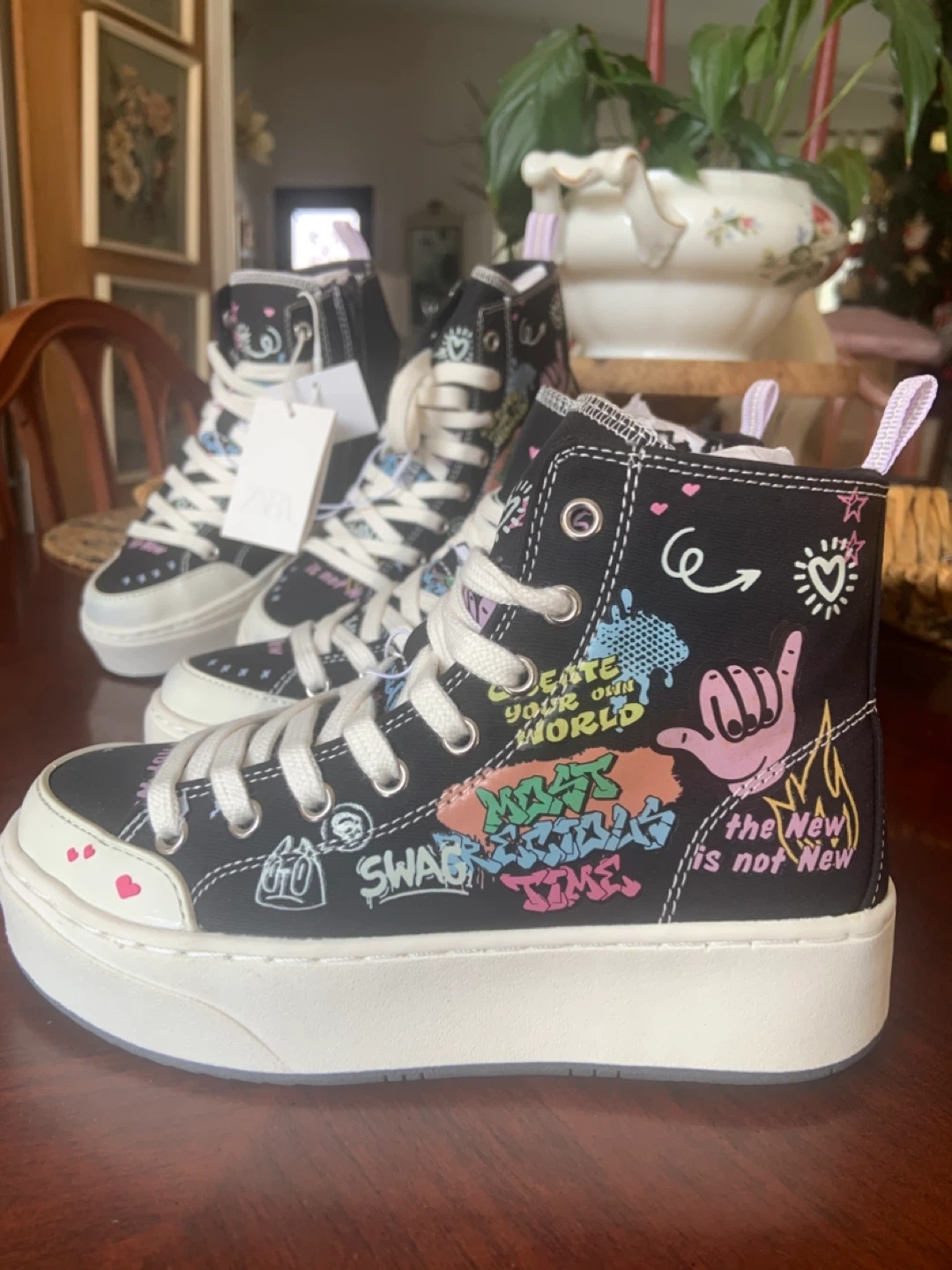 ZARA Black High Top Graffiti Sneakers