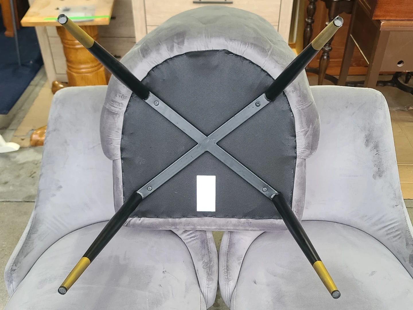 Set of 4 Grey Velvet Dining Chairs with Gold Accents