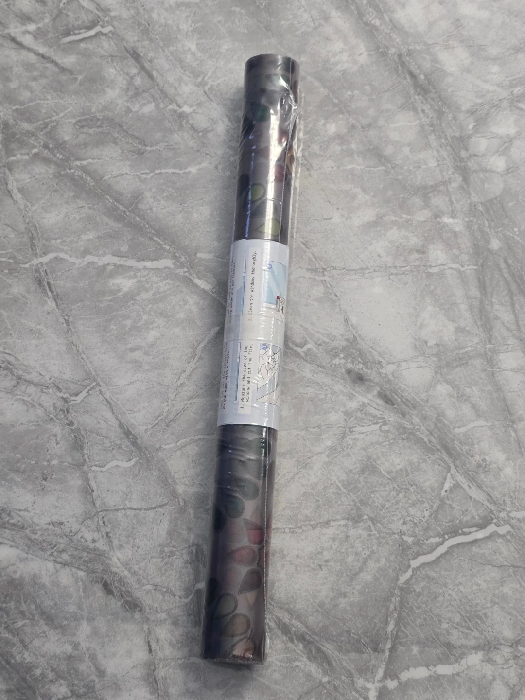 Retro style wallpaper with a pear drop pattern. Dimensions are 17.7" x 78.7". This wallpaper is self-adhesive and easy to apply.