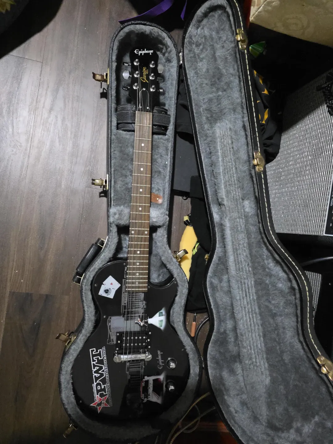 Black Epiphone Junior prowakeboard tour edition very rare electric guitar. Comes in a fitted hard case. Perfect for aspiring musicians! And collectors
