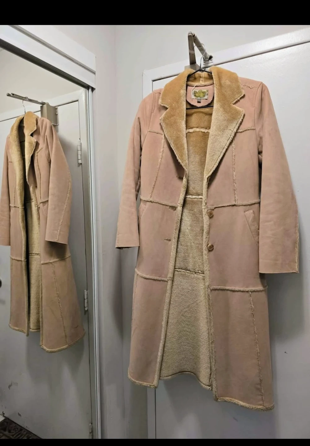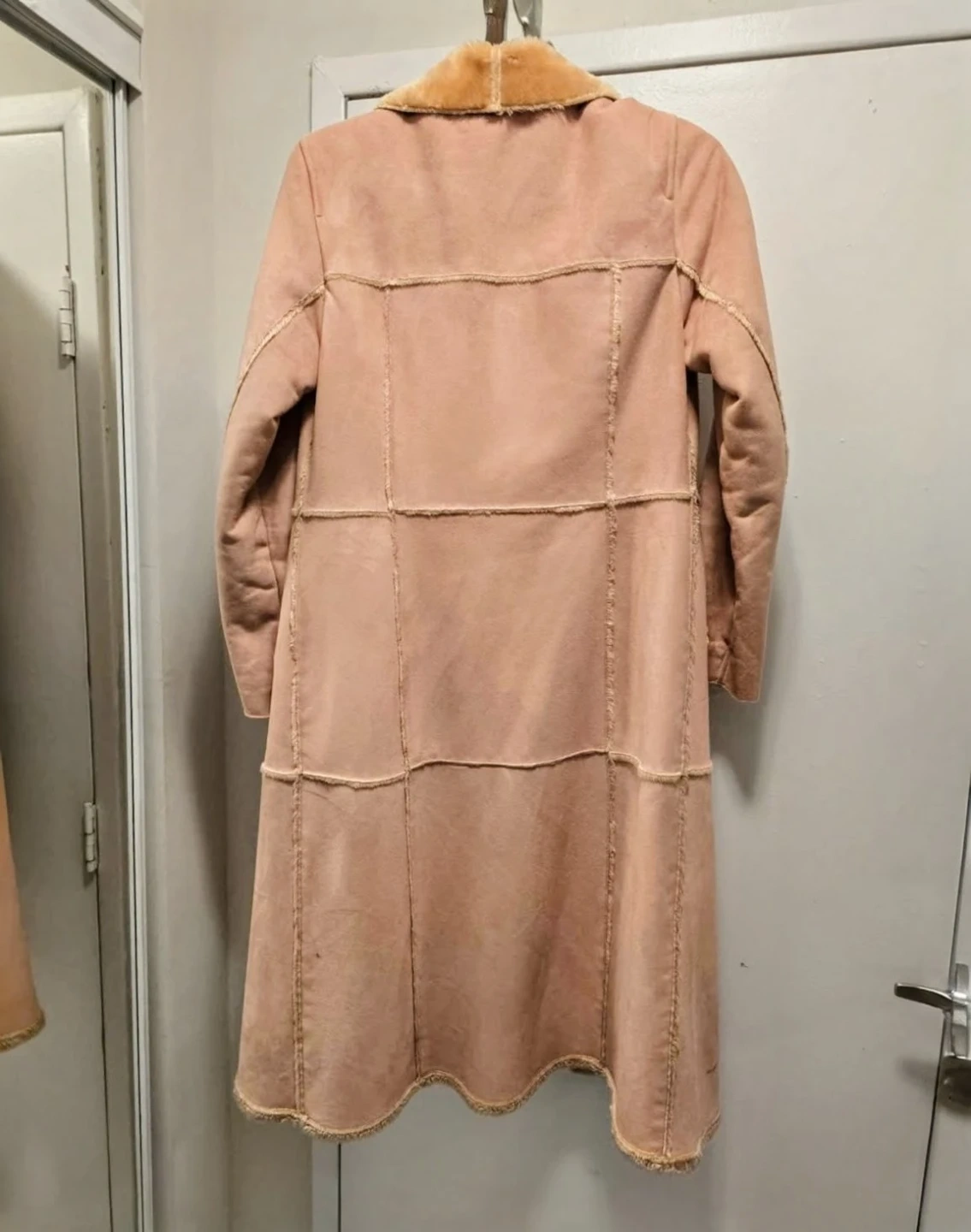 Selling a vintage suede coat in great condition! It's a lovely beigh/camel colour with a faux fur lining. Perfect for adding a touch of retro style to your wardrobe. It's super cozy and warm for those chilly days