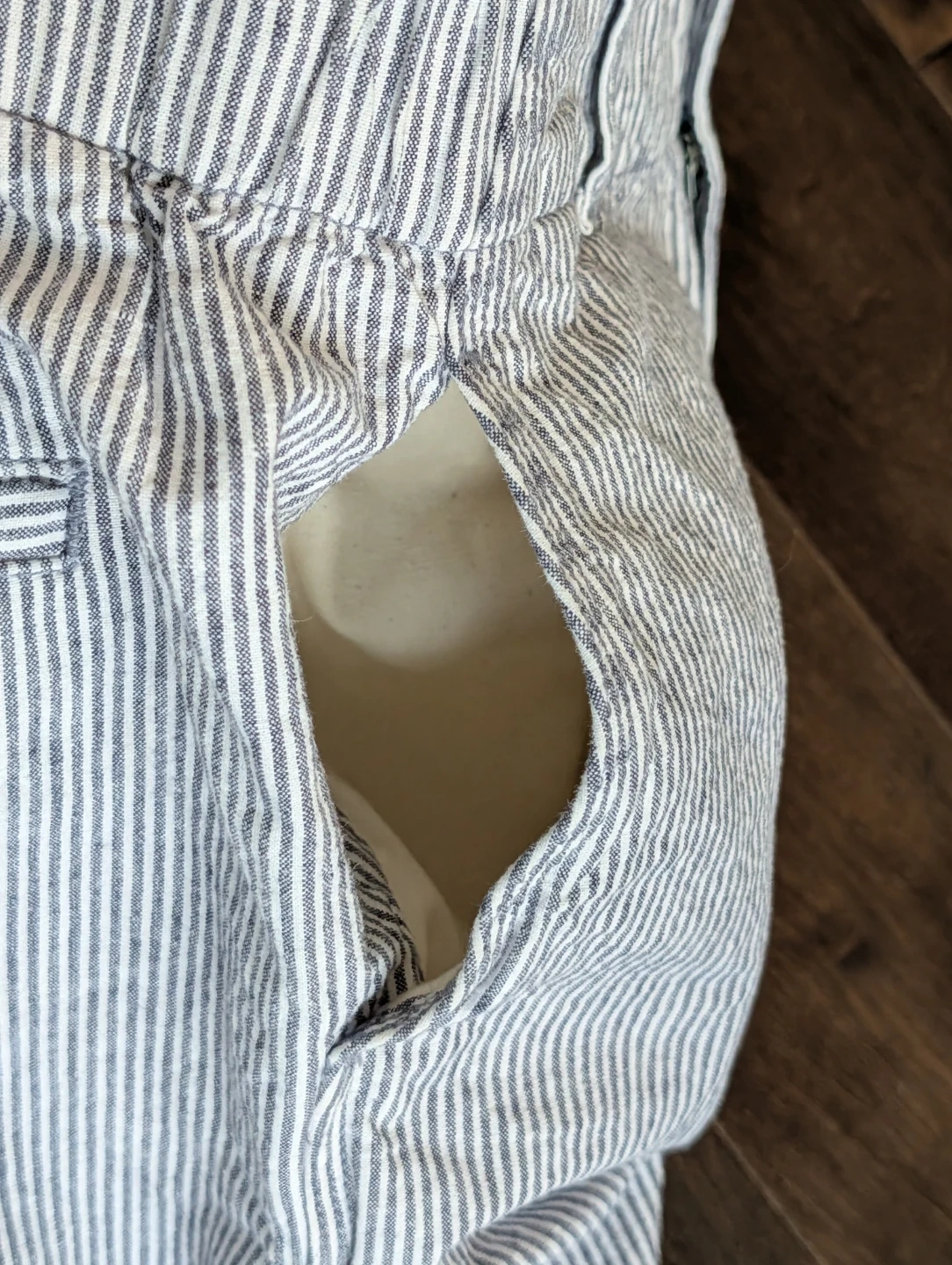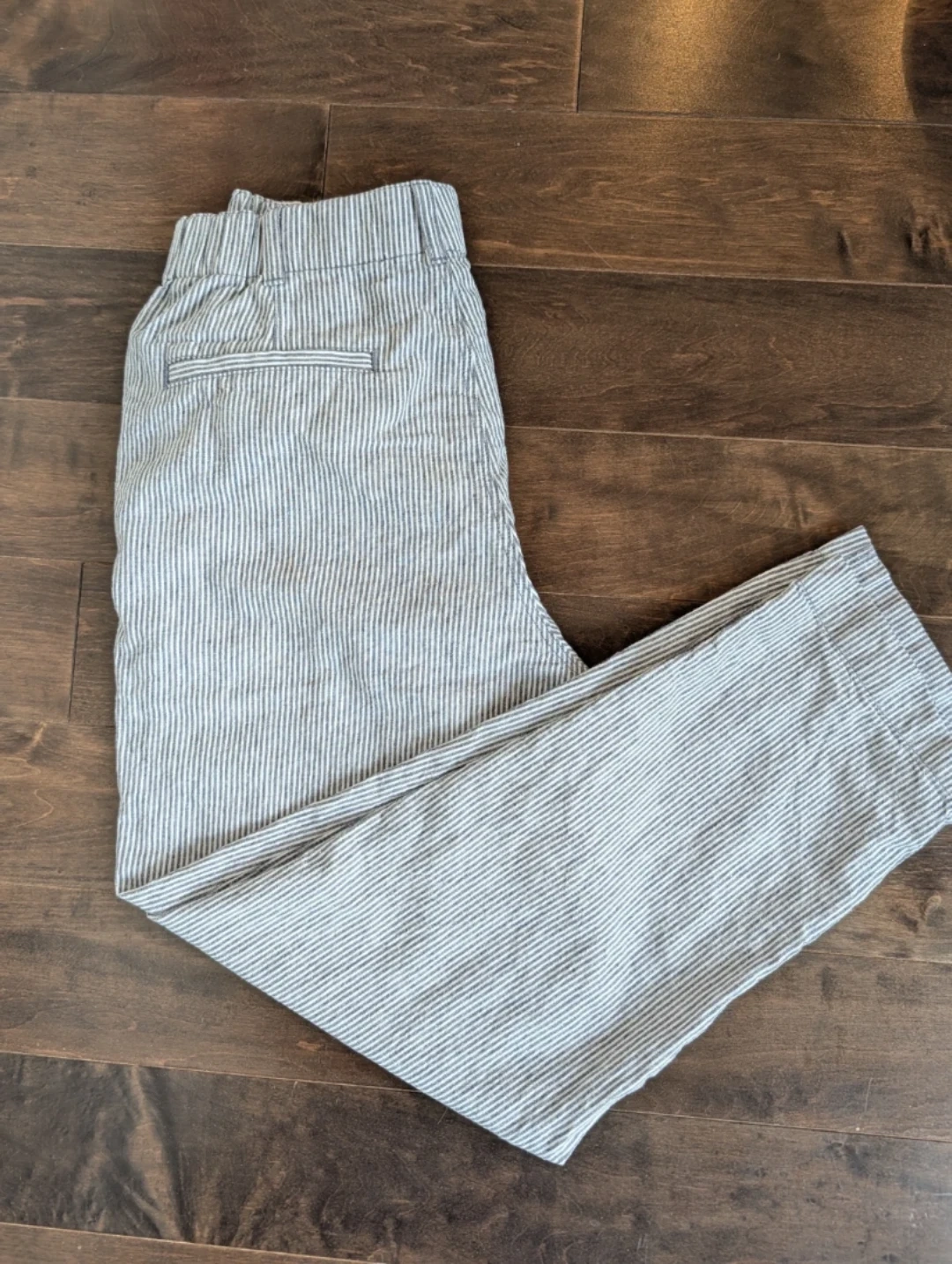 Blue and white striped Uniqlo trouser pants.