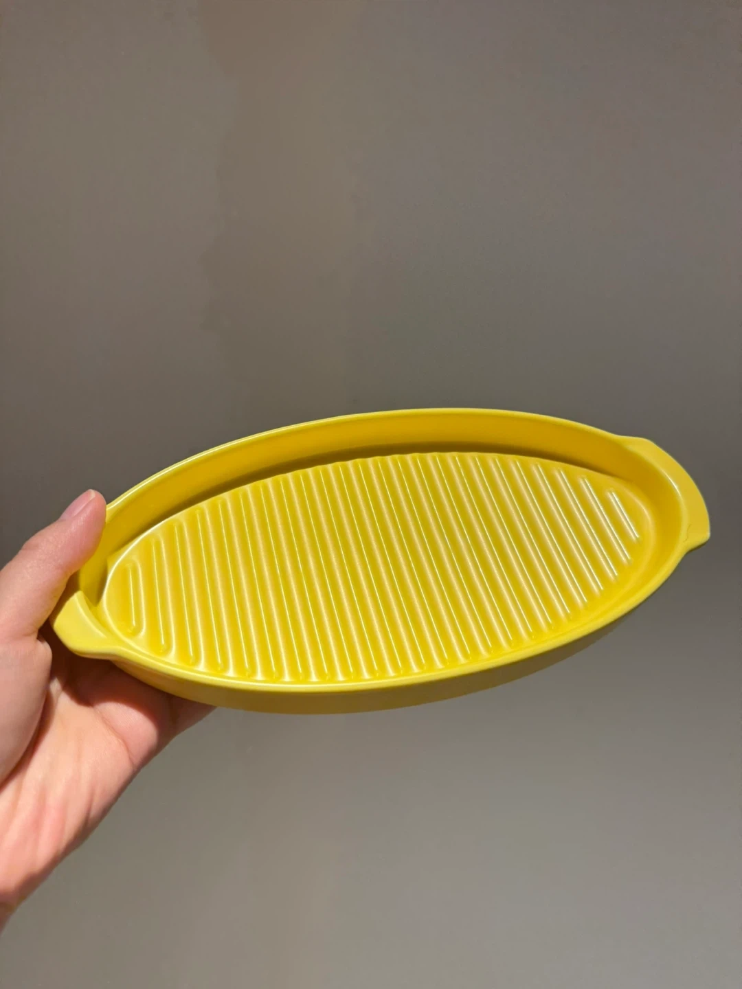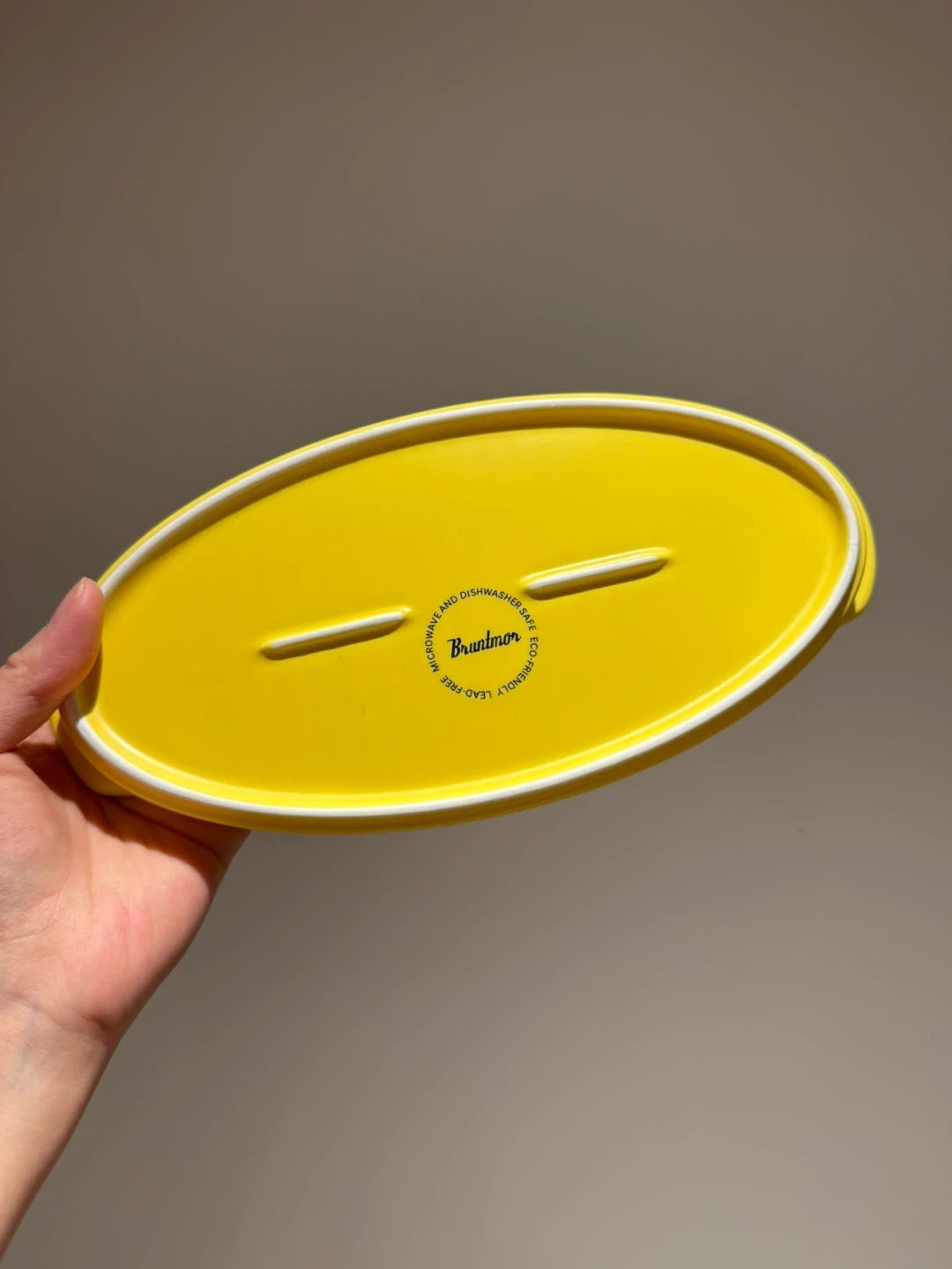 Bruntmor ceramic matte glaze baking dish. This is a 10-inch dinner plate designed as a roasting grill pan with handles. It's microwave, oven and dishwasher safe. 4 in yellow.