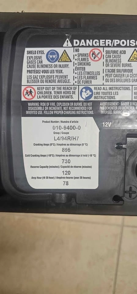 Excellent condition! One year old. Professionally charged and tested. 895 CC, 730 CCA, 120 RC, 78 Ah. Fits many European cars like Mercedes, BMW, Audi, VW, and domestic cars, vans, and trucks.