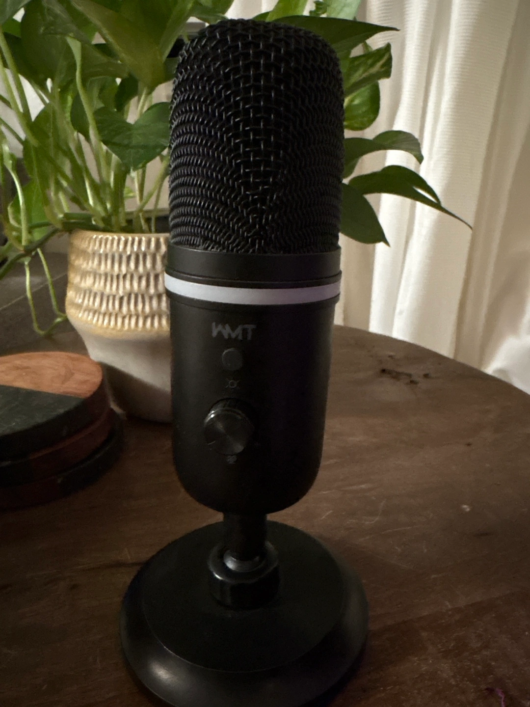 5USB microphone. Cardioid condenser mic. For PC/MAC/PS4/PS5/phone. Features headphone output, volume control, mute button, and brilliant RGB lighting. Ideal for streaming, podcasting, and Discord. Original price is 65$ Has a bit of damages on the top but it’s perfect