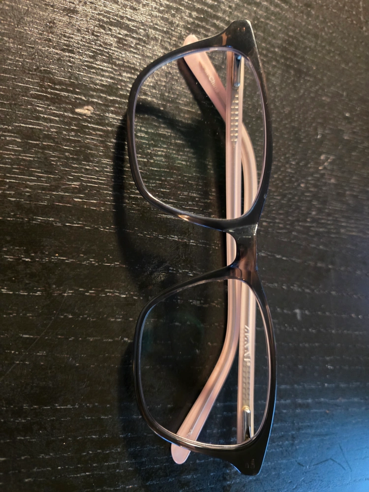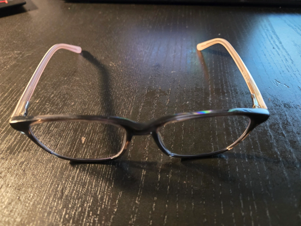 Selling a pair of grey and pink eyeglasses. They are in great condition. Pick up at Gerrard and Greenwood. Glasses have a prescription selling for the frames.
