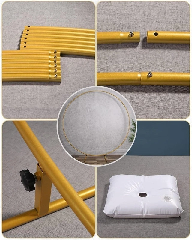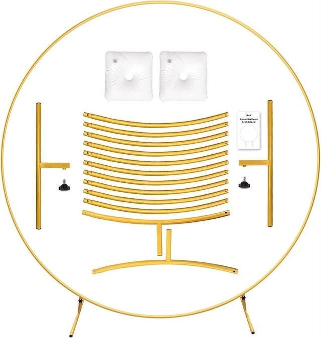 Add a touch of elegance to your next event with this used round balloon arch! It's perfect for birthdays, weddings, or any celebration that needs a bit of whimsy. This arch is easy to assemble and disassemble, making setup and takedown a breeze. Details: Height: 7.55ft (2.3m), Diameter: 7.25ft (2.2m). Includes: Metal tubes, metal legs, water bases, and user guide. This arch has been used a few times and is ready to make your event sparkle. Priced at $75, reflecting its good condition. If the ad is up, it's available.