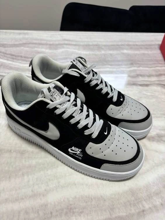 Selling a pair of Nike Air Force 1s in black and grey colour. These shoes are in great condition and come with the original box.