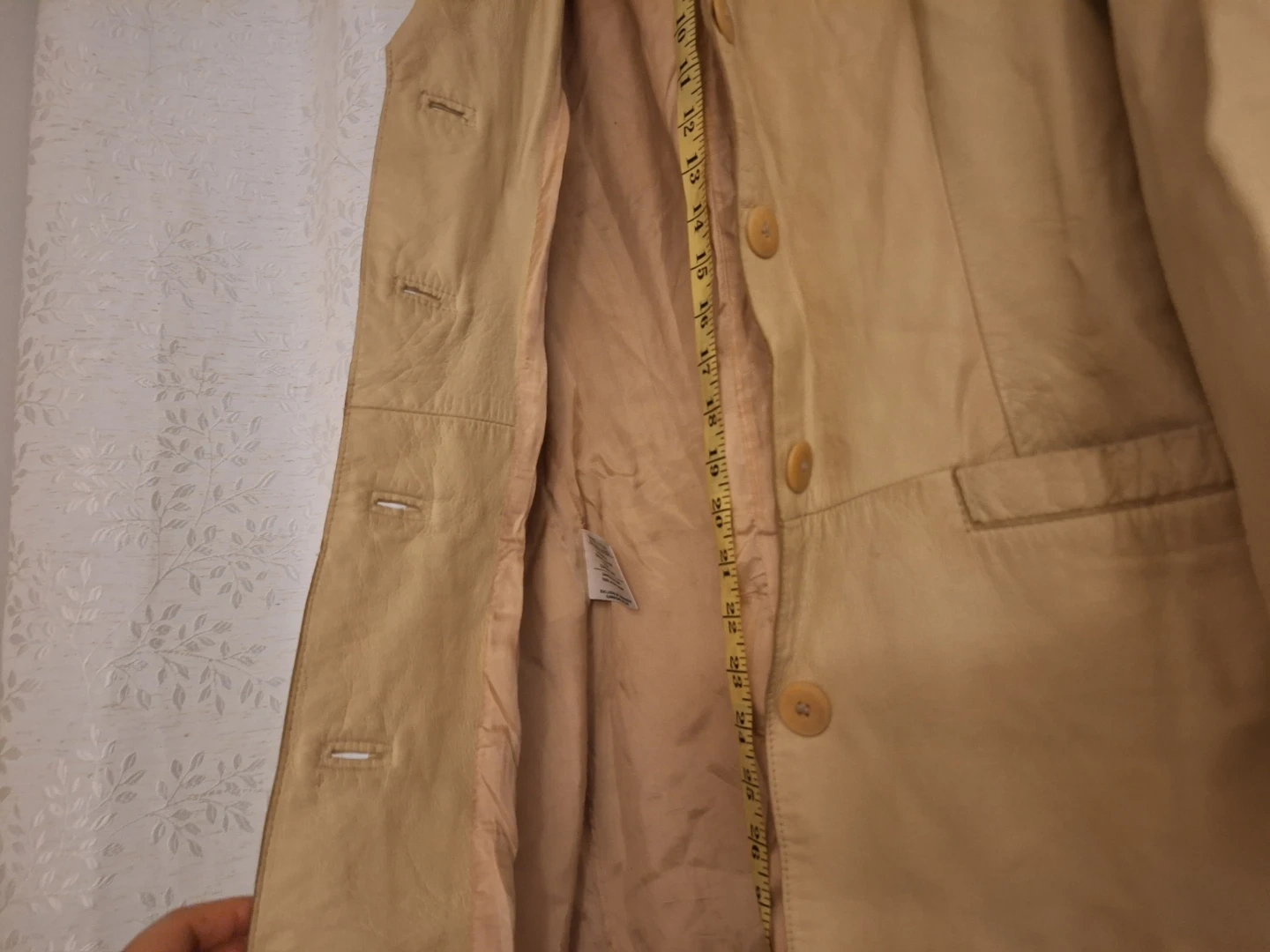 Pick up only! Danier leather coat in a beautiful neutral colour! It is a size XS/TP (Extra Small/Très Petit). The coat measures approximately 33 inches in length. Made in Canada!