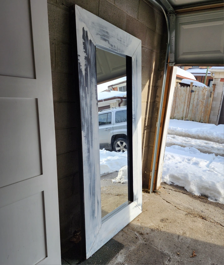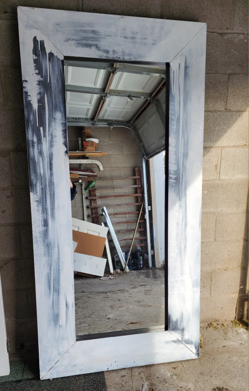 Large ikea mirror. Can be used as floor standing or wall mount. There are brackets at the back for wall mount option.