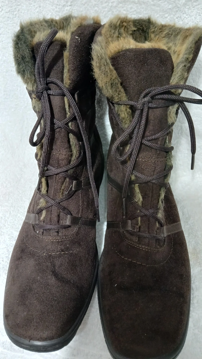 Ladies size 8.5 brown suede boots for $10.00. Very gently used and in excellent condition. Not real fur. Porch pickup at Dufferin and Bloor st.