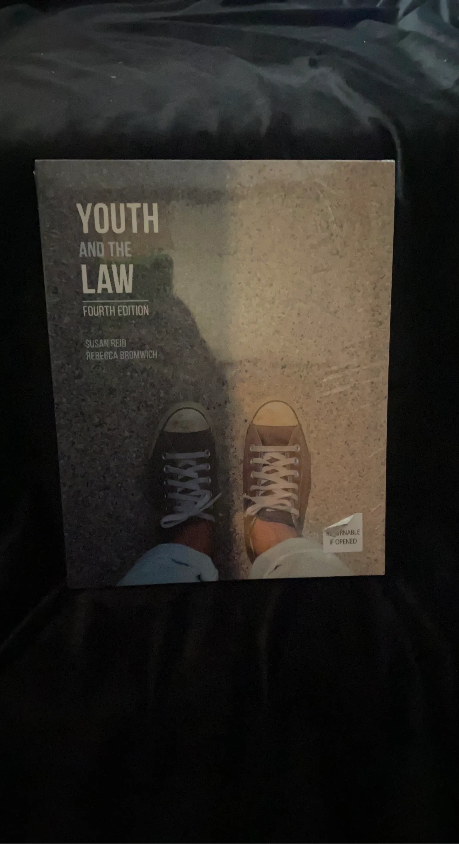 I'm offering a crisp, brand new copy of "Youth and the Law, Fourth Edition" by Susan Reid and Rebecca Bromwich! This comprehensive textbook delves into the ways in which youth interact with criminal law and the criminal justice system in Canada. It's an essential resource for students and professionals alike, providing a detailed overview of youth criminal justice from police procedures to trials and sentencing to rehabilitation.