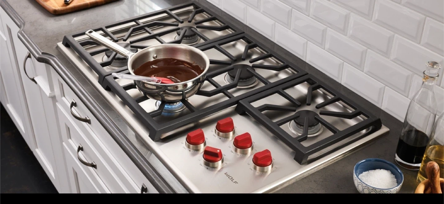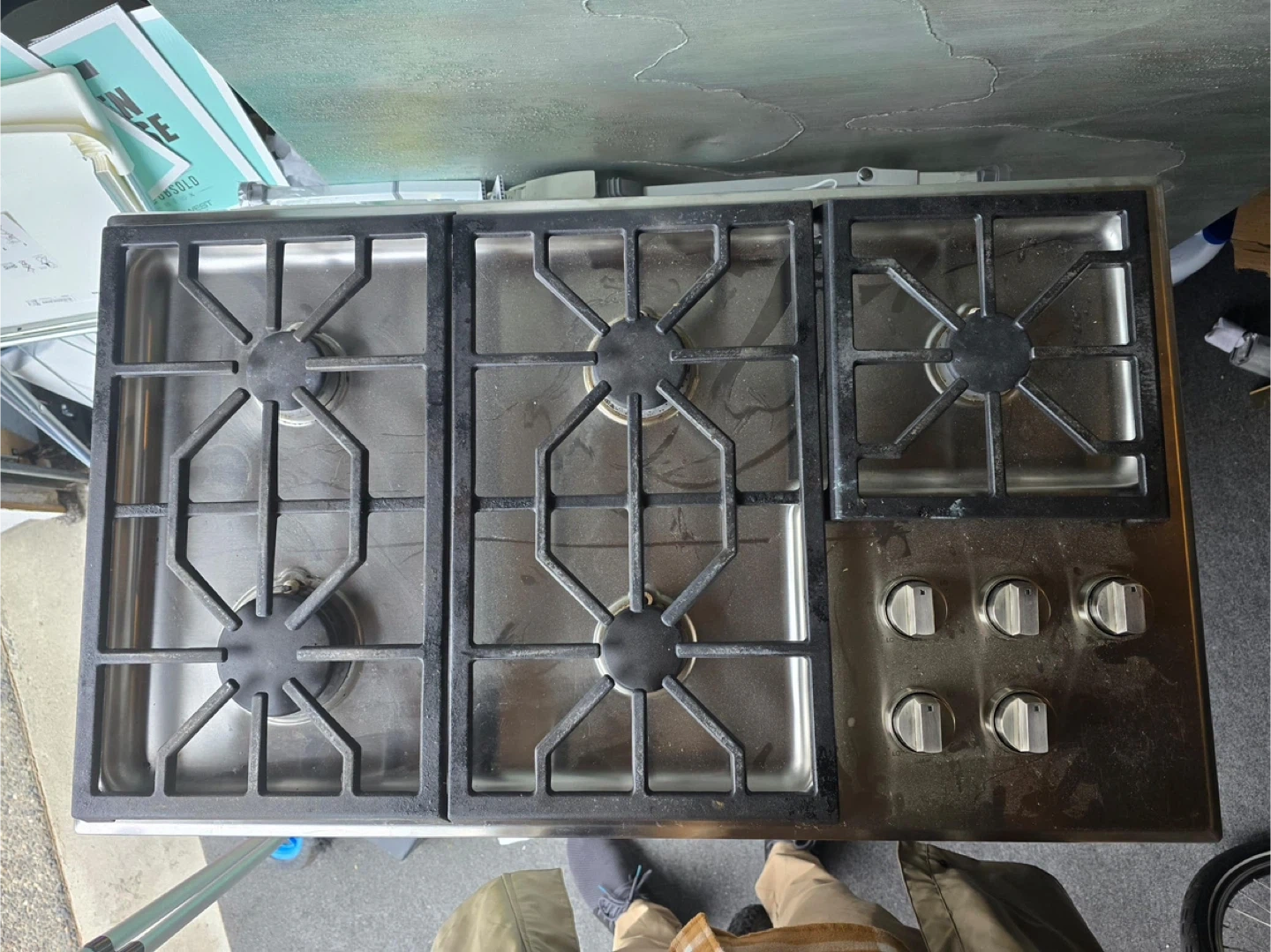 Selling a Wolf gas cooktop range. It's in great condition and ready to be installed in your kitchen! The cooktop features a stainless steel finish and black grates.