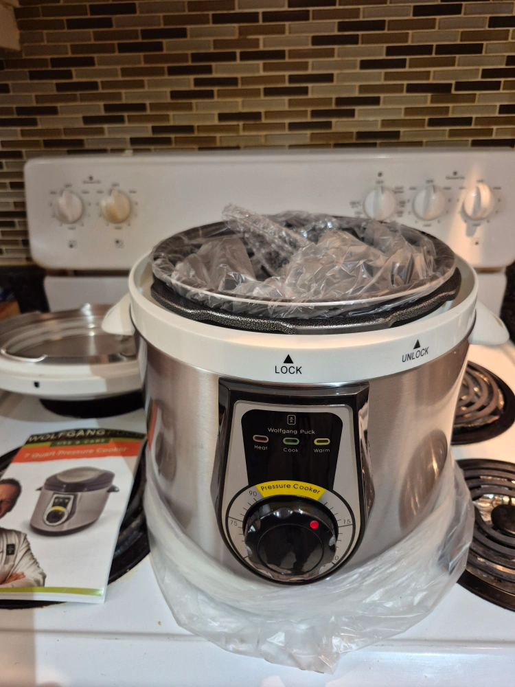 Selling a brand new Wolfgang Puck 7-Quart Pressure Cooker! It's never been used and comes with the original box and packaging. Perfect for quick and easy meals!