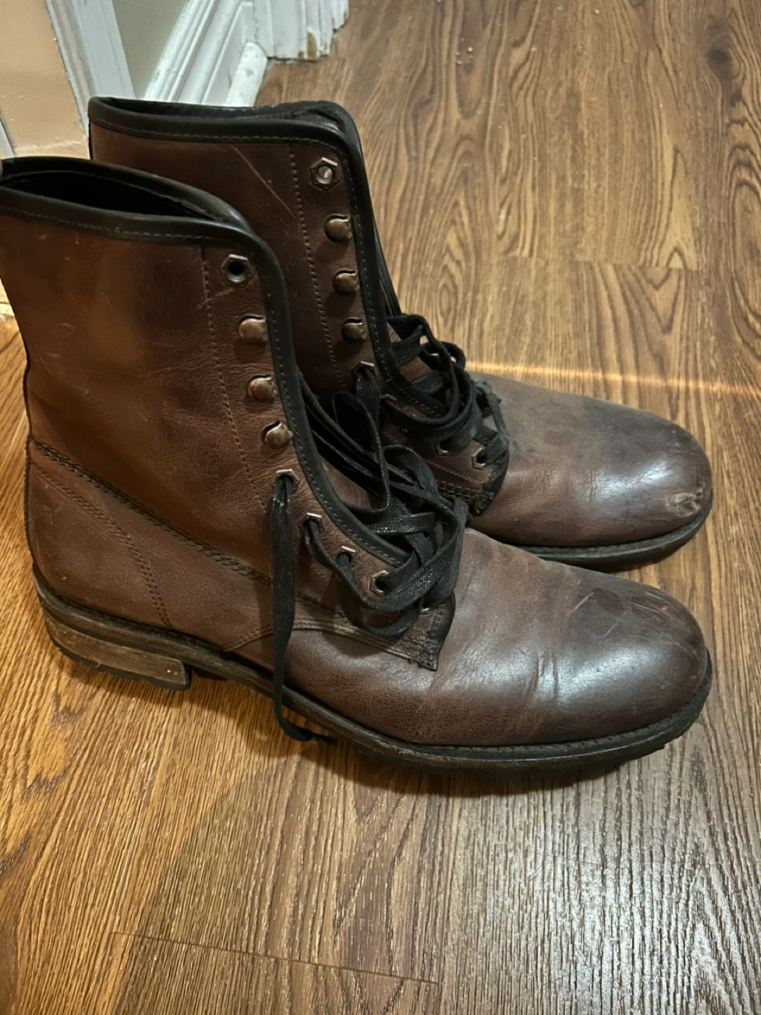 10Brown leather fashion boots. Lace-up closure. Barely worn excellent condition.
