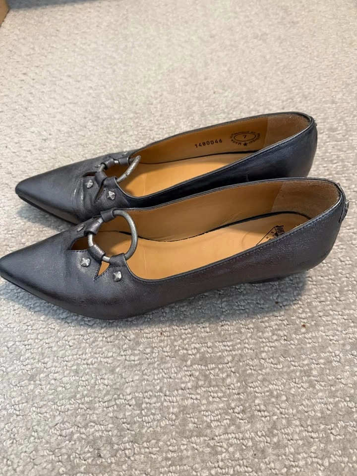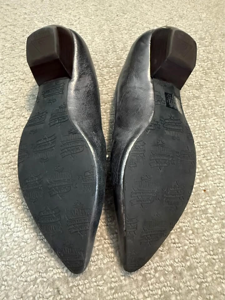 15Beautiful Silver John Fluevog Makena leather heels. Discontinued Great condition. Smoke free home.