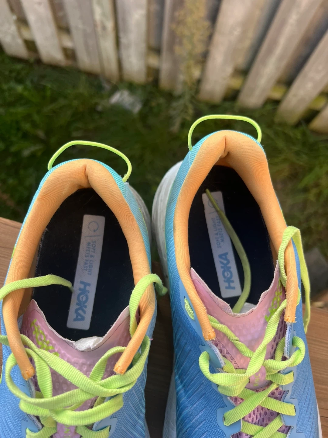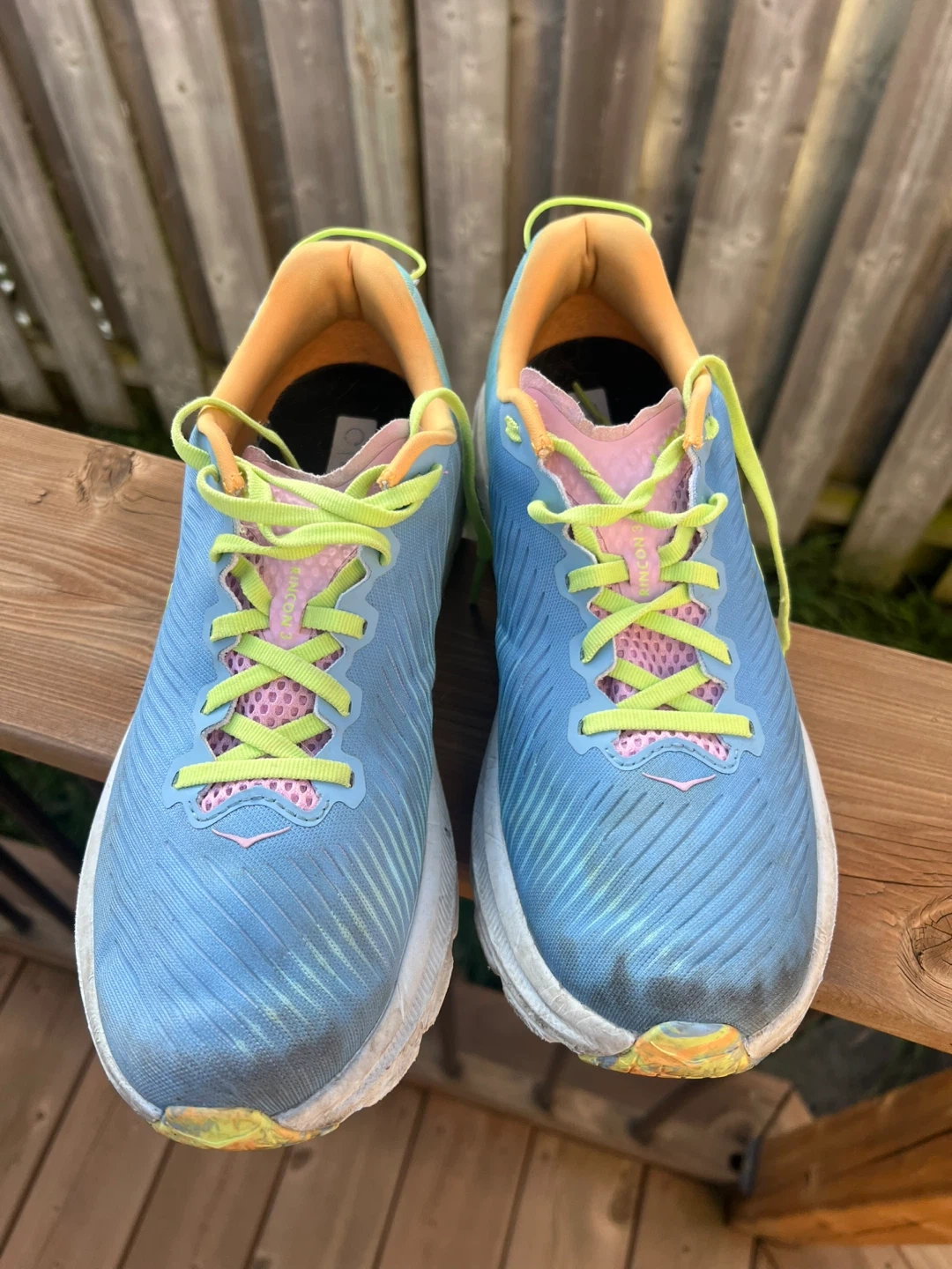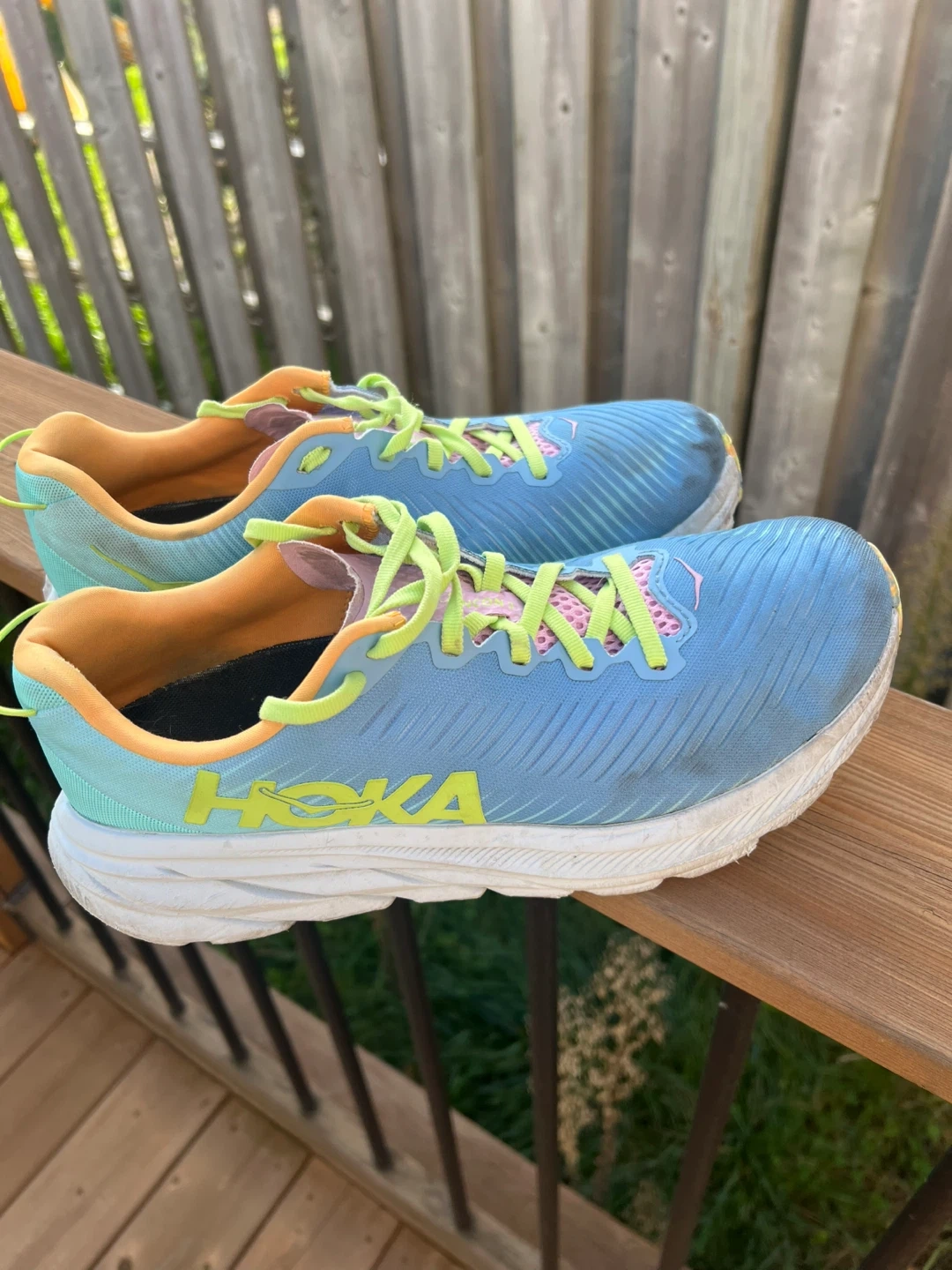 86Selling a pair of Hoka running shoes. They've been used, as you can see from the soles, but still have plenty of life left in them! Great for hitting the pavement or trails. If you're looking for comfortable and supportive running shoes, these could be a good fit for you