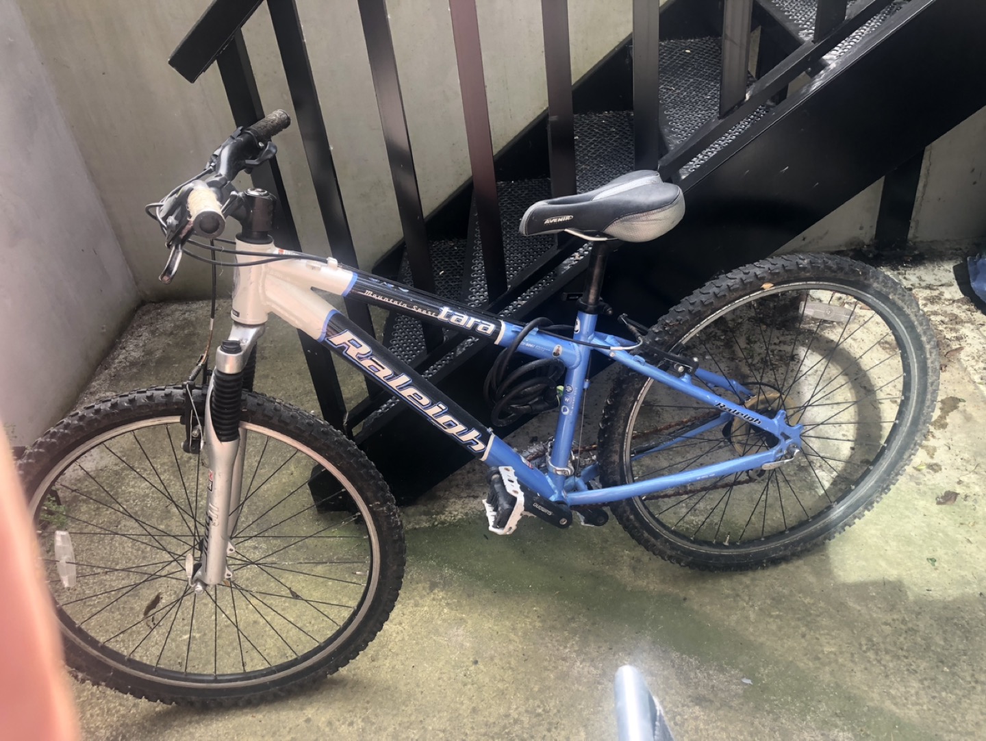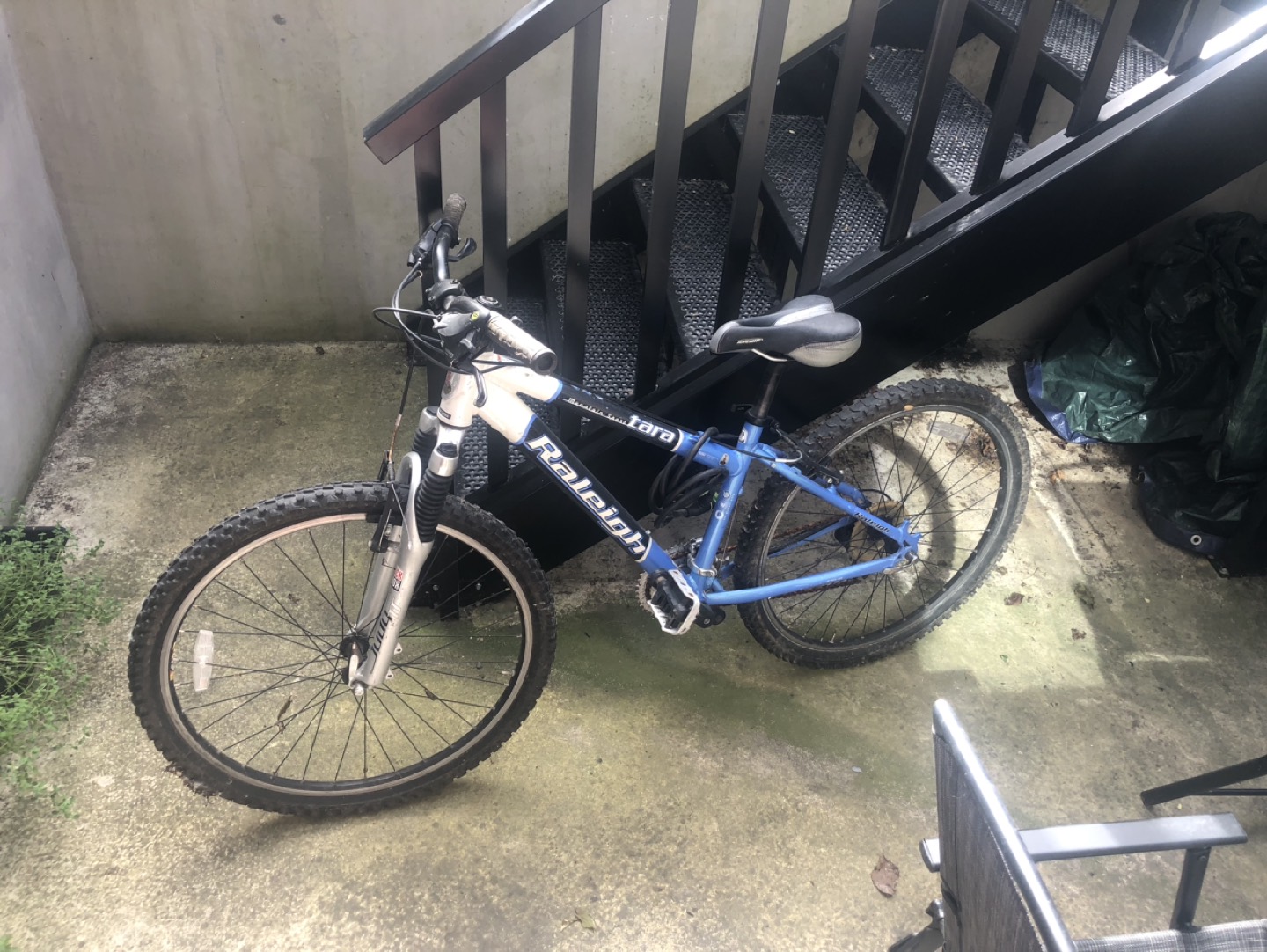 52Raleigh mountain bike that needs some work. The chain is rusty and it needs to be be greased but otherwise works well. I’m 5’5” and it works for me but would also work for someone shorter.