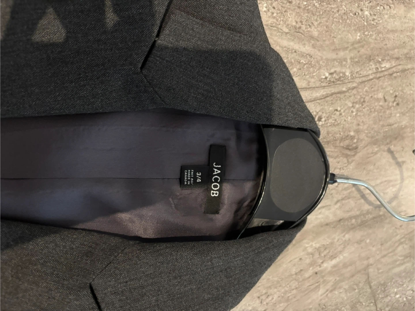 128This is a stylish Jacob two-piece women's suit in size 3/4, perfect for professional settings or formal occasions. The suit is gently used, but still in excellent condition, showing only minimal signs of wear. The blazer features a classic cut, while the pants are tailored - slim fit to flatter. Here are some additional details: * Brand: Jacob * Size: 3/4 * Colour: Gray * Material: High-quality suiting fabric * Style: Two-piece suit Don't miss out on this fantastic deal! If you're seeing this ad, the suit is still available and waiting for a new home. Outdoor porch side pick up only. Very near Bayview and Eglinton in Davisville - please have a look at my other items for sale. Thank you