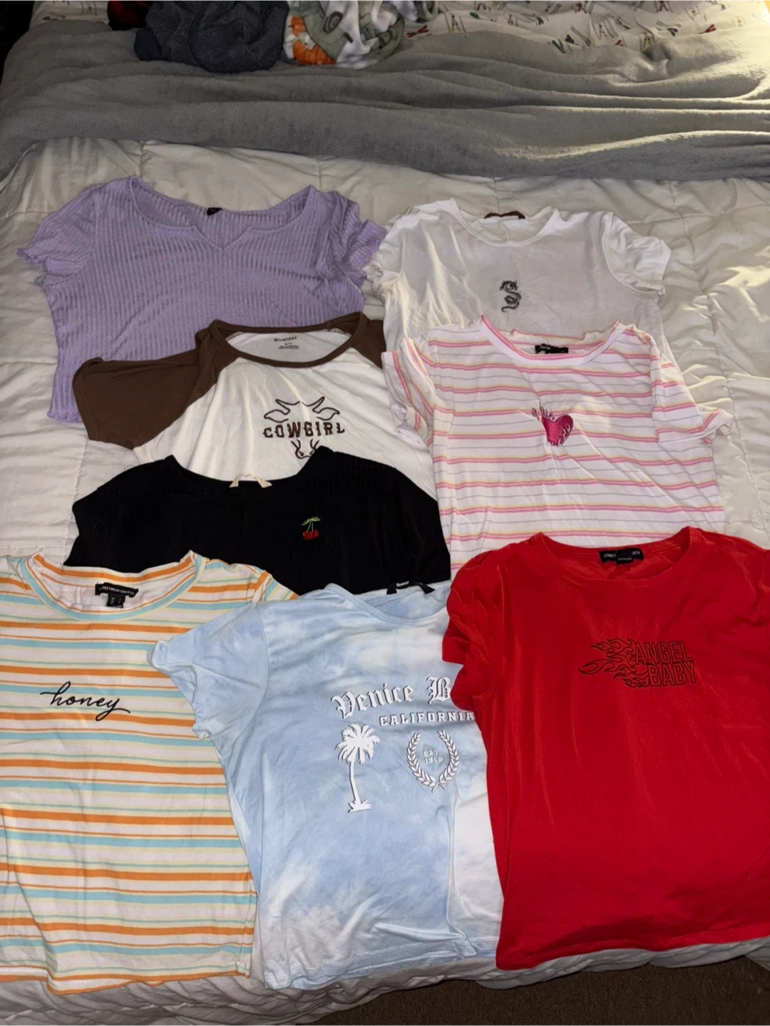 Lot of 8 womens baby tees, all size large. Either from Bluenotes or Streetwear Society. $5 each or all for $30