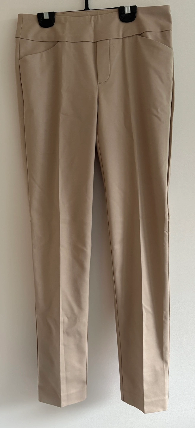 244Beige ankle-length pants. Pull-on style. Flat front. Two pockets. New/ Never Worn! From no smoking/ no pet home.