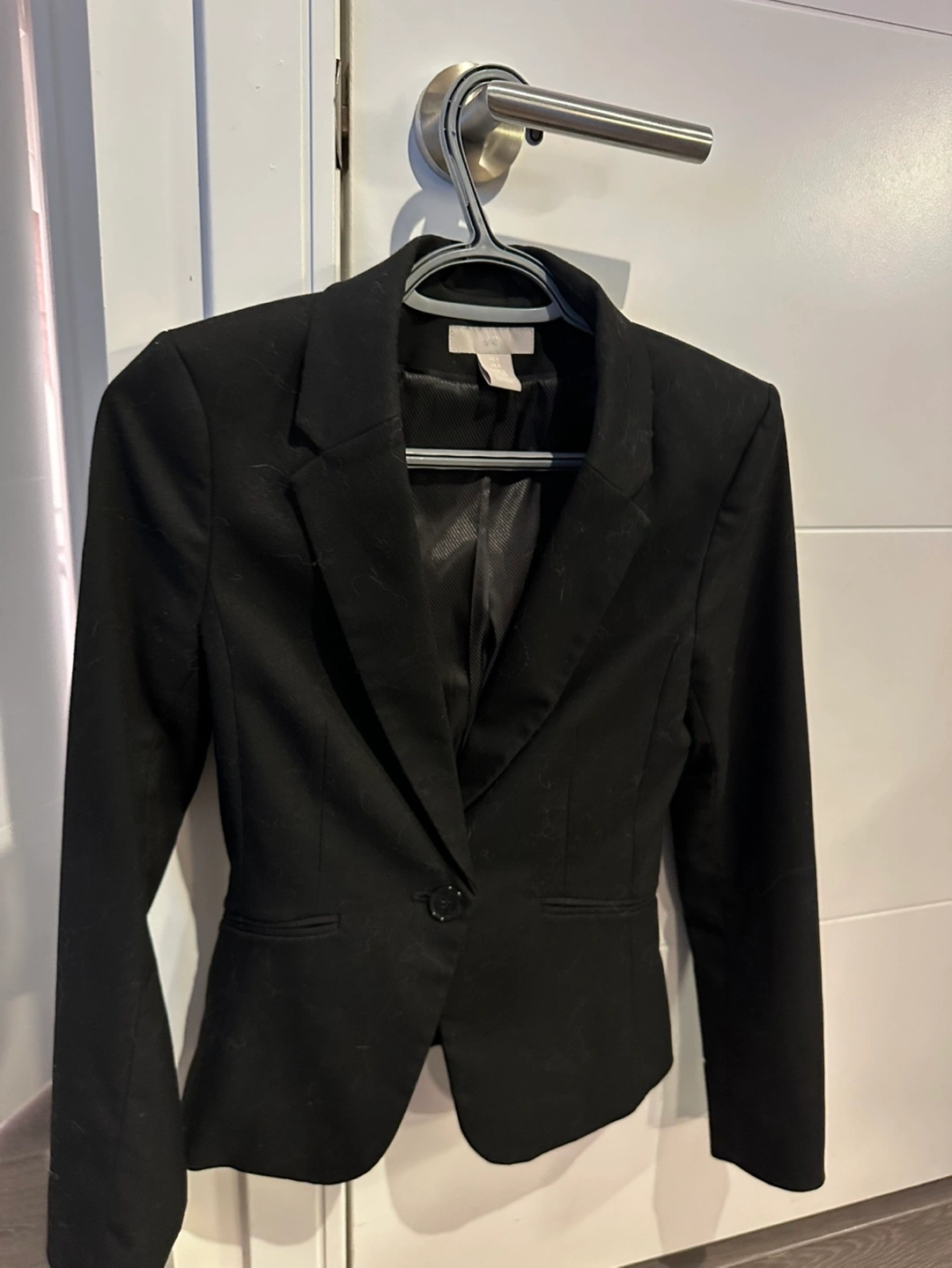28Classic black blazer. Single button closure. Long sleeves. Good for work or casual wear.