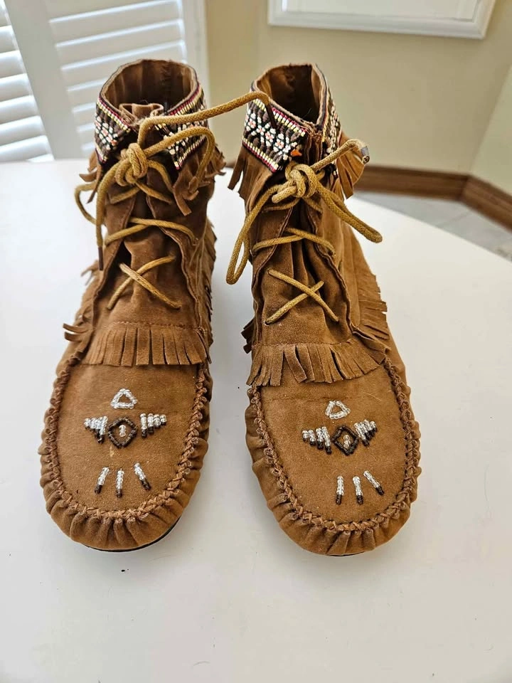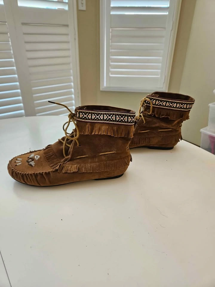 65Womens Brown Moccasin-Style Boots - Size 7. New, never worn. Cash offers only.