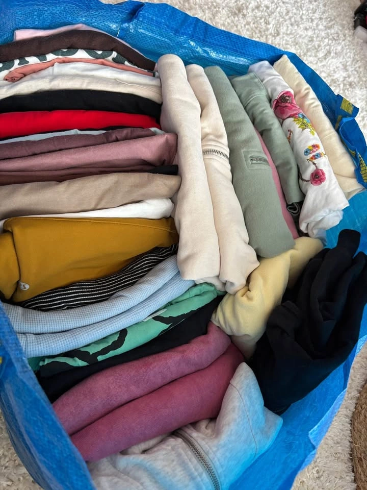Large bundle of assorted women’s clothes, mostly tshirts and sweatshirts/ sweatsuits. Brands range from dynamite, Kotn, Frank & Oak, Uniqlo, Lululemon, H&M etc Sizes mostly large, some medium and an occasional small Pick up at broadview and Danforth in Toronto