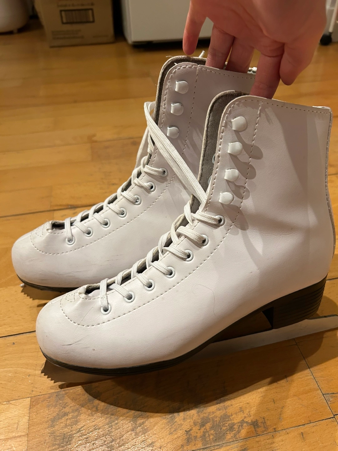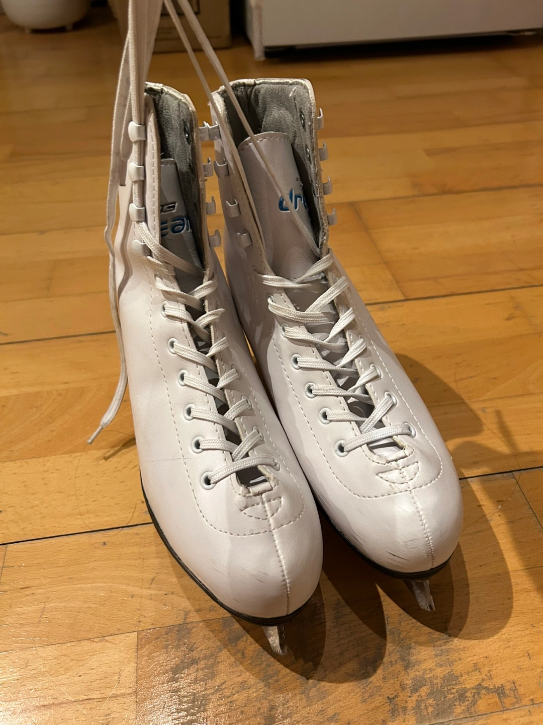 176White figure skates. Size 7 US, 40 EUR. Lace-up style. Very good condition, no skate guard included