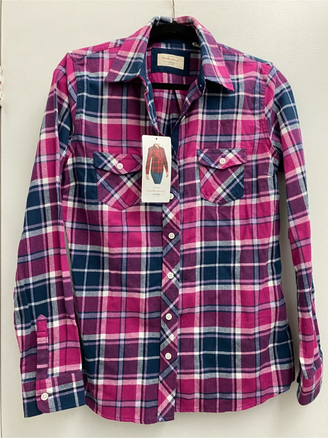 Cozy and stylish Weatherproof Vintage flannel shirt in a vibrant plaid pattern! This shirt features a classic button-down design with two chest pockets. Perfect for adding a touch of rustic charm to your wardrobe! New, with tags.