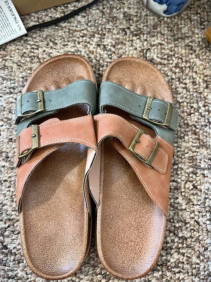 Women'S Flat Sandals - Solid Color Open Toe Slides with Metal Buckle Closure, Rubber Sole and Insole, Casual All-Season Slip-On Shoes Size 38 Never used, brand new