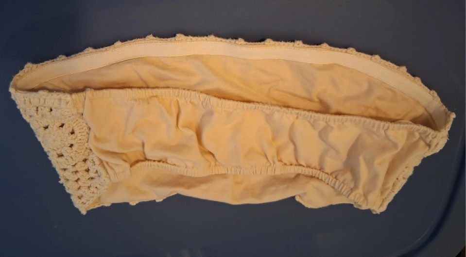 34Light beige colour Size large Maybe worn once Originally from "Garage" 100% cotton Has elastic liner inside top edge to help hold in place $5 firm Pick up preferred