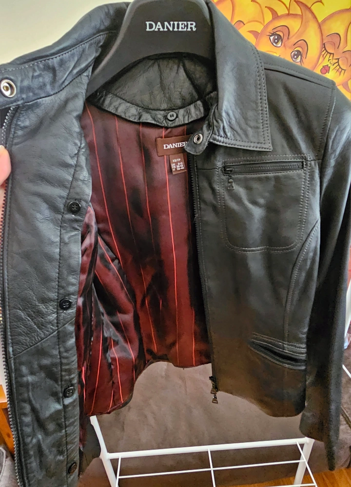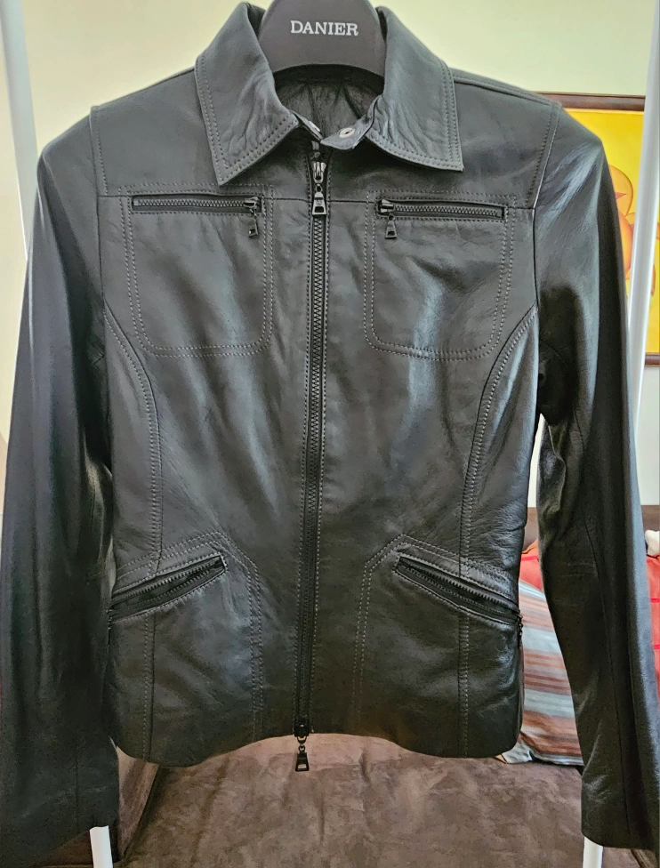 10Timeless piece womens soft leather jacket with removable liner. Perfect condition Size: XS - S (without the liner) Color: Black with red/burgundy inside trim
