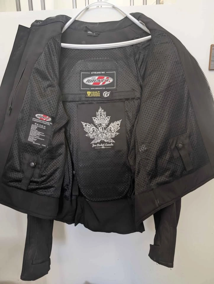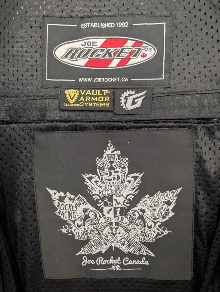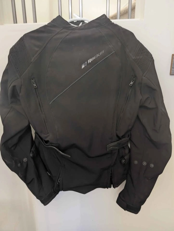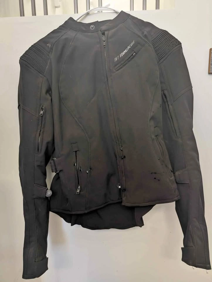 53Women's Joe Rocket jacket with back armor. Adjustable arms and waist as well as ventilation throughout. Fits true to size