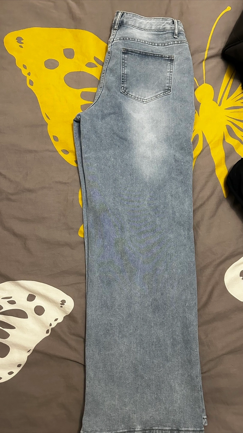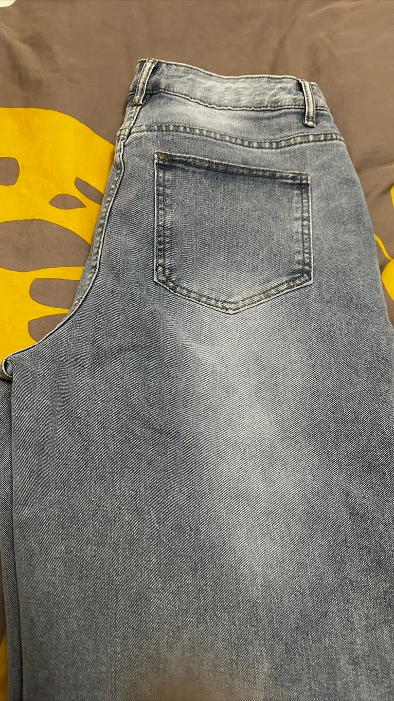 38Pair of light wash straight wide leg jeans. Classic five-pocket styling. Casual everyday wear. Excellent condition. Size Large Cash Only Mississauga pickup, No Delivery