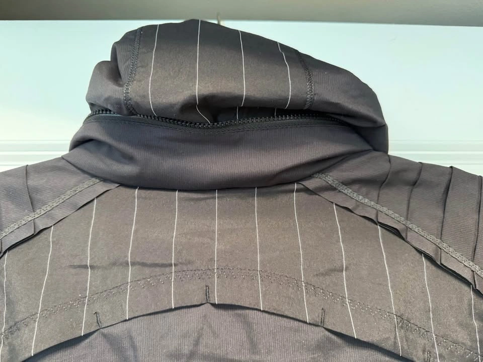 18Size: 8. Very comfortable, lightweight, breathable jacket with a hidden hoodie for women.