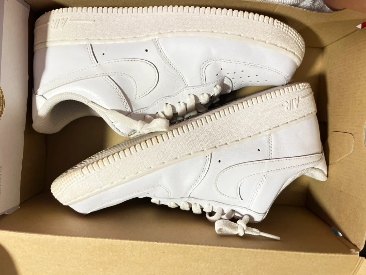 25Selling a pair of Nike Air Force 1s in white. They are a size US 10 (WOMEN) and come with the original box. Great condition!