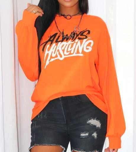 Show allWomens Oversized Orange Long Sleeve Graphic Tee