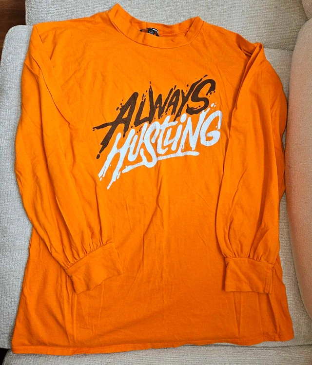 'Always Hustling' verbiage Lightly used and in very good condition! Nice soft and stretchy material Says xs but is very oversized and stretchy and can fit up to a size Large comfortably Located in Aurora For Sale By: Owner