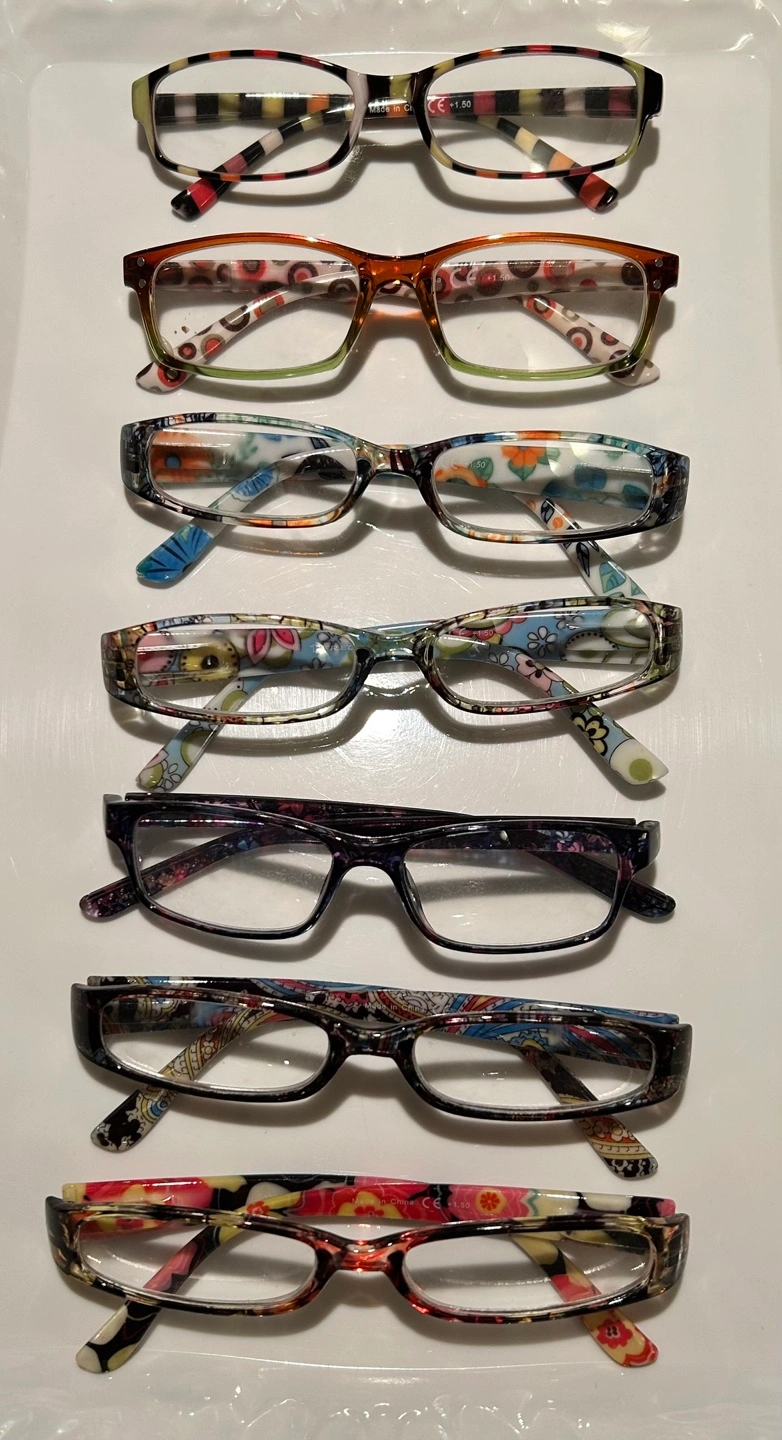 294Bundle of seven women's reading glasses. Various colours and patterns. +1.50 magnification. Stylish and functional. $4 each or take all for $24. 😊 Pick up location Northeast Burlington Intersection Appleby line and Dundas Contact free porch pick up Smoke free home